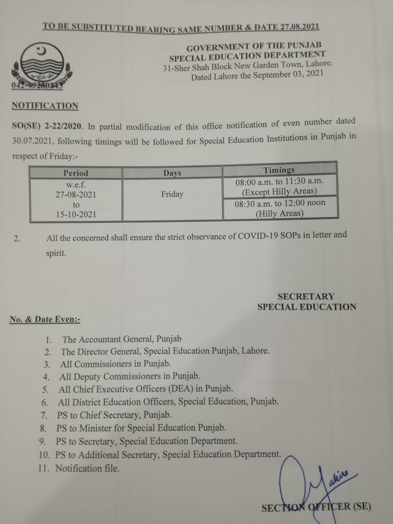 District Education Officer (Special Education), Lahore & Gujranwala