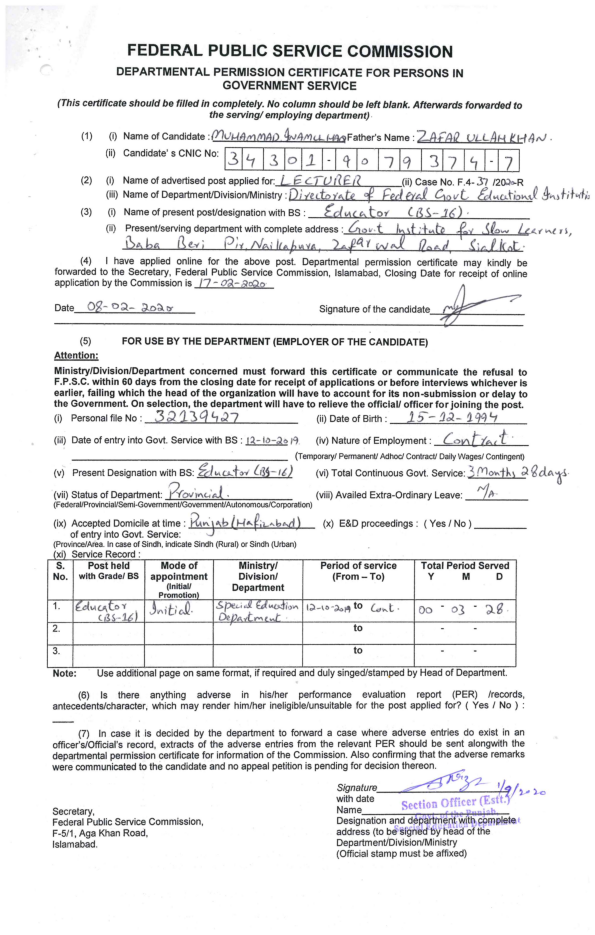Departmental Permission |