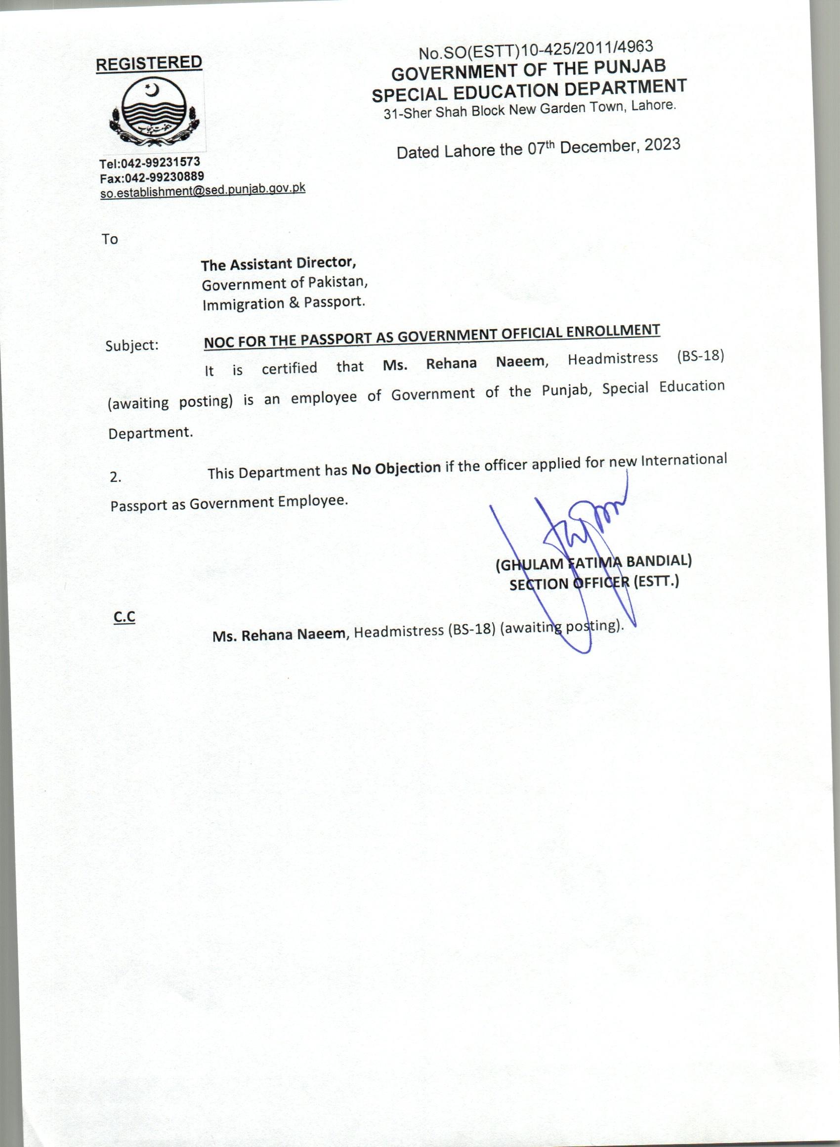 NOC For Passport |