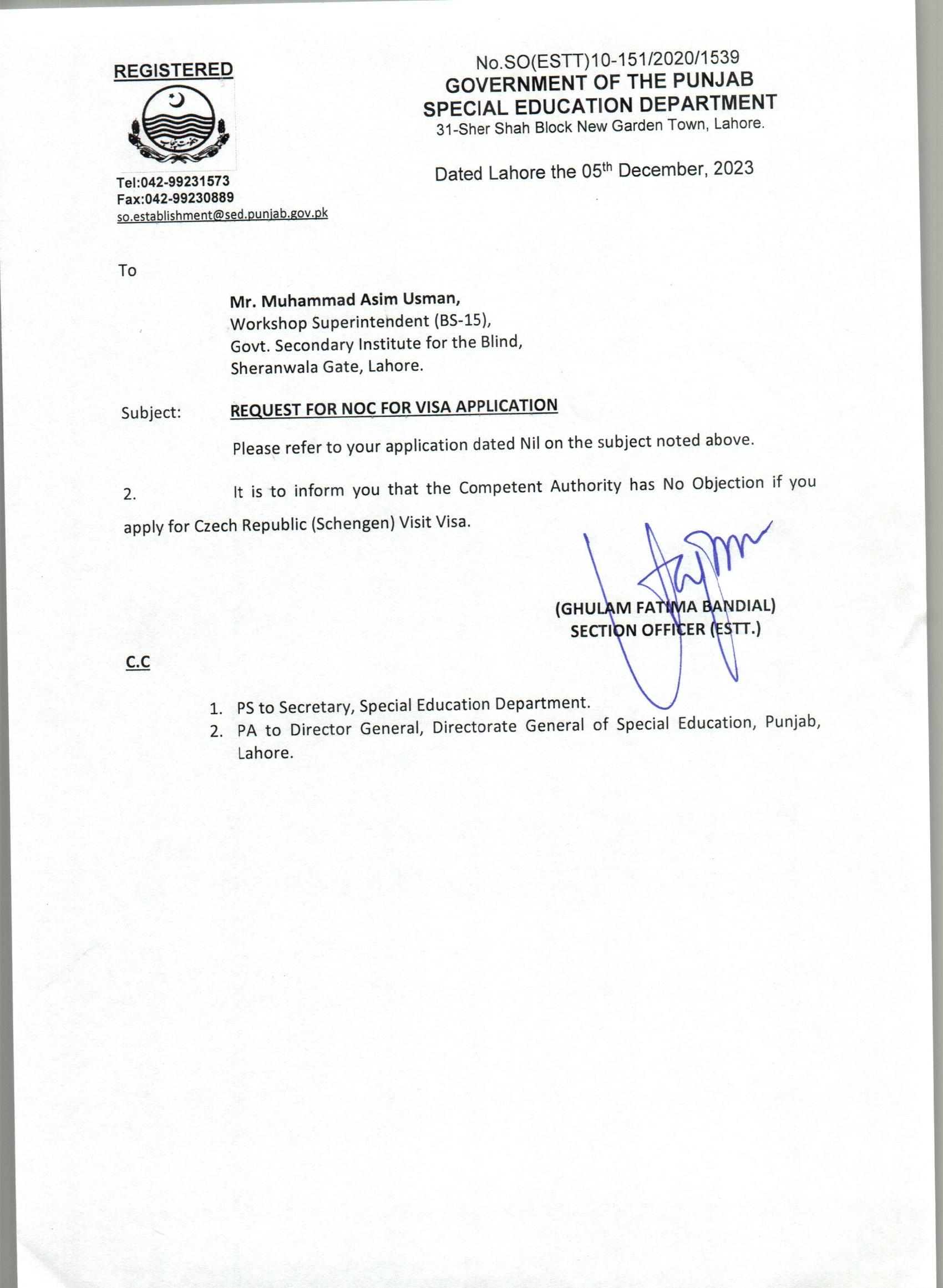 NOC for VISA |