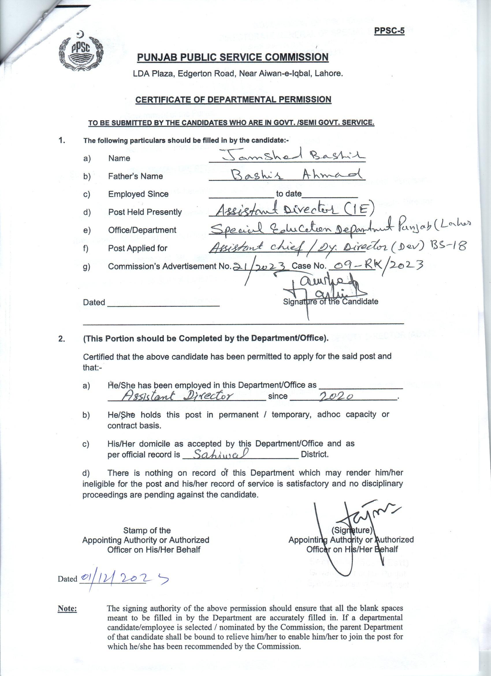 Departmental Permission |