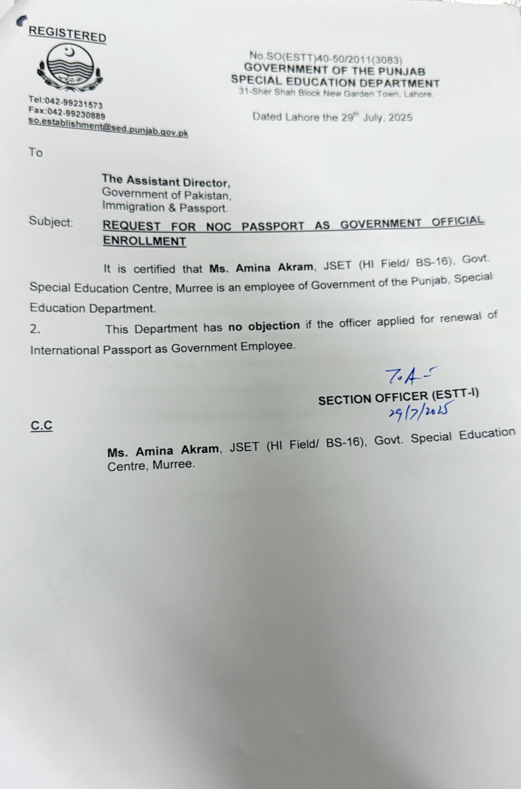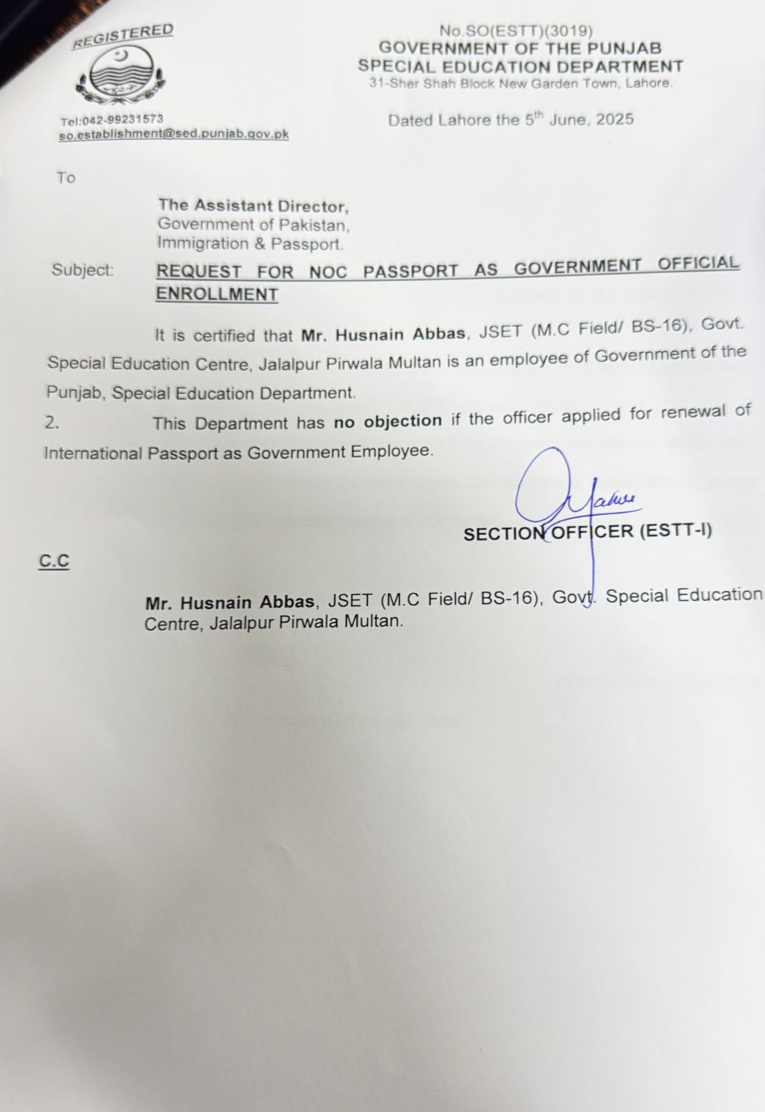 Noc For Passport / Departmental Permission (Combined) |
