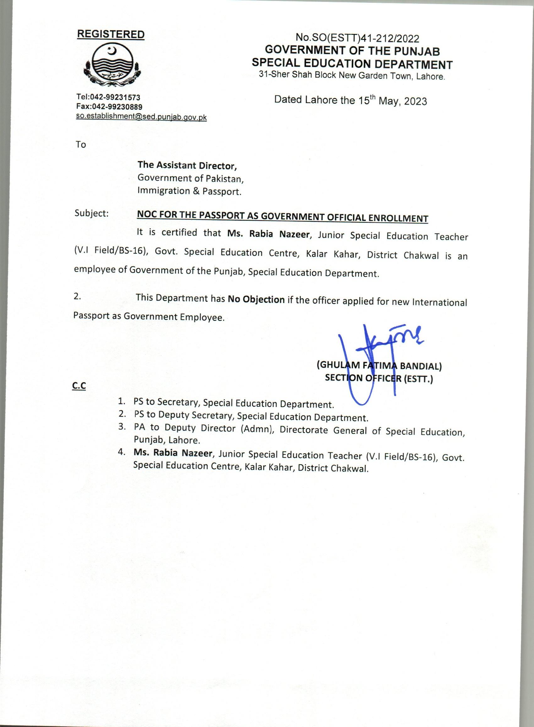 NOC For Passport |