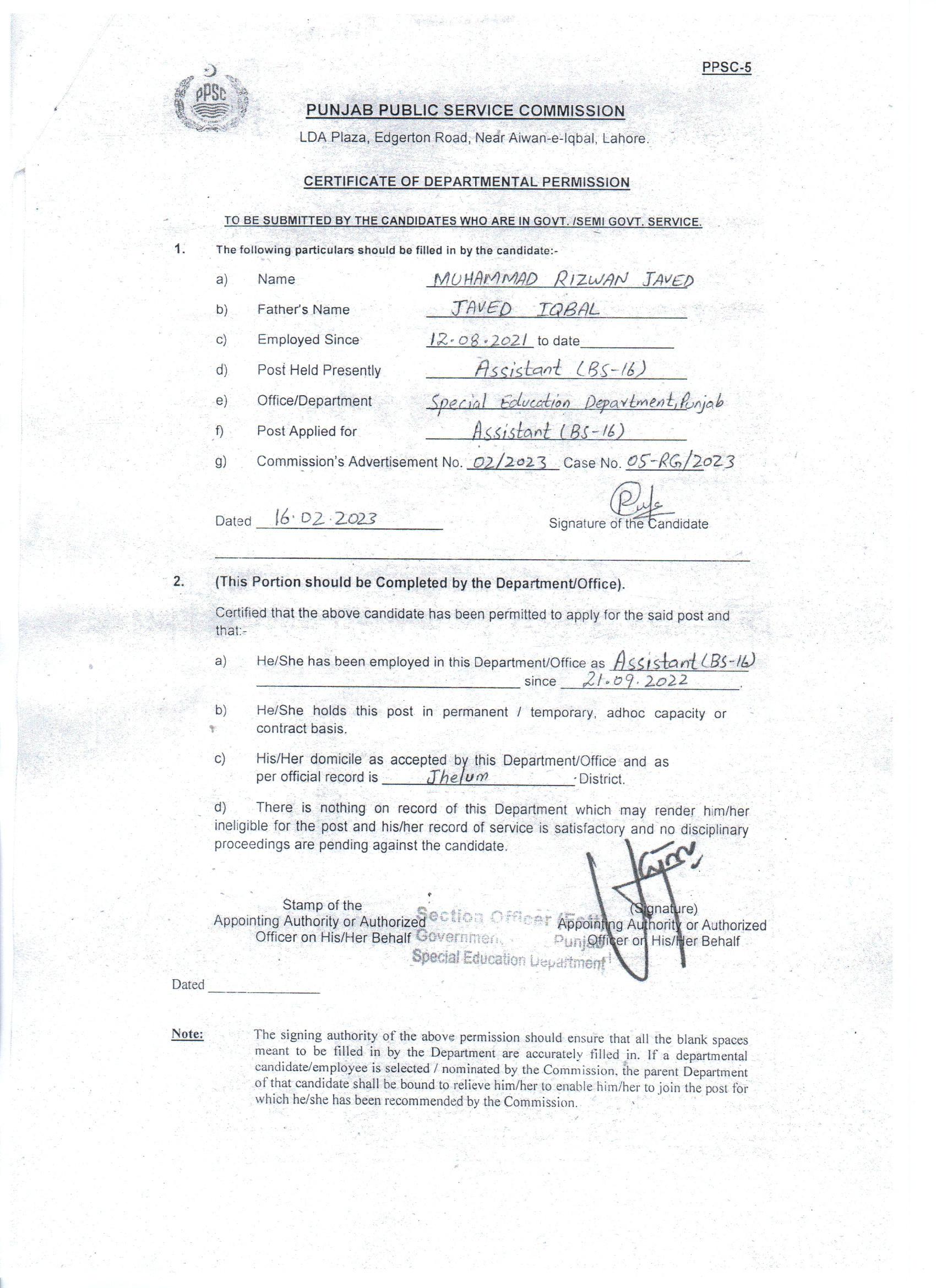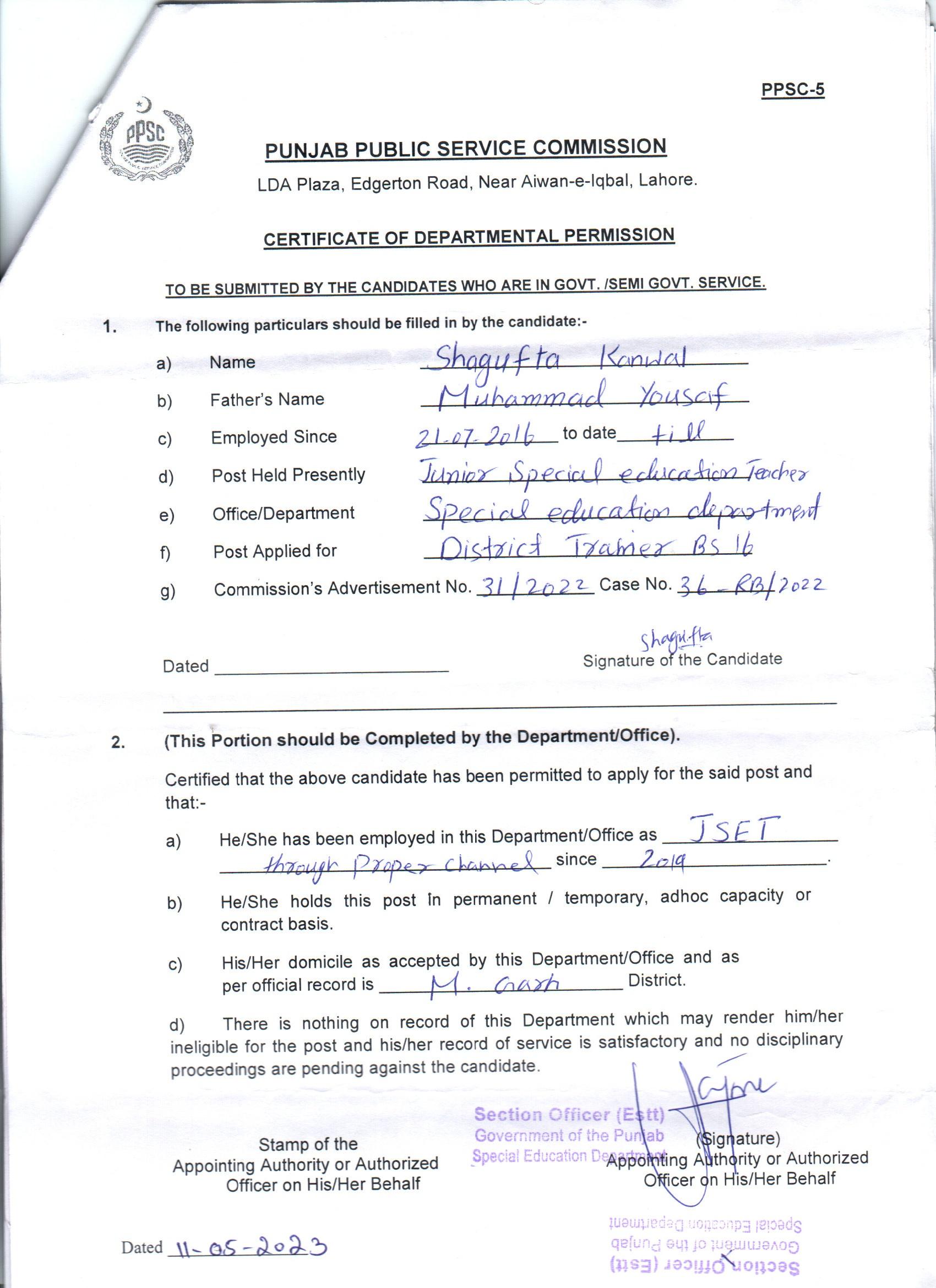Departmental Permission |