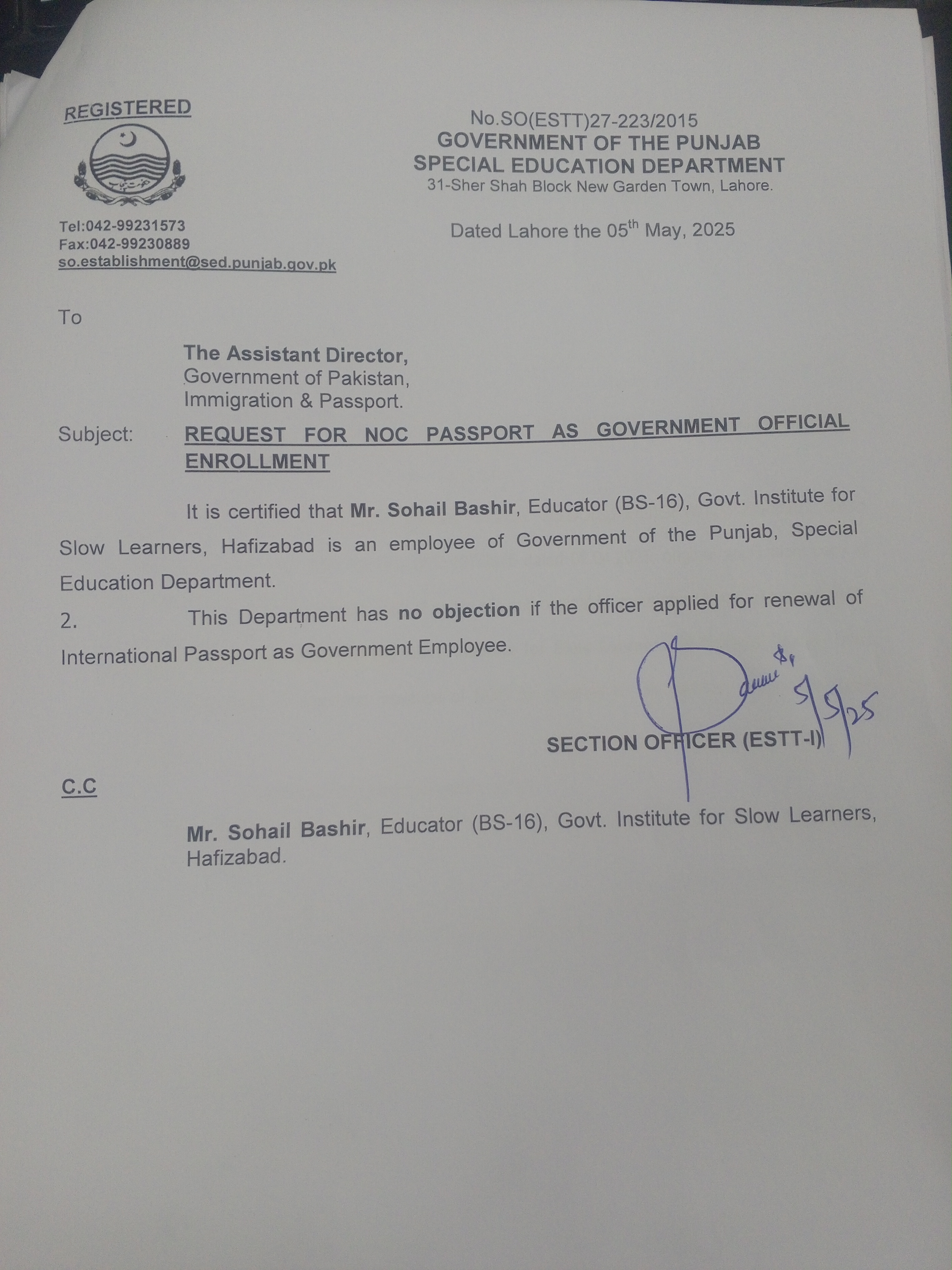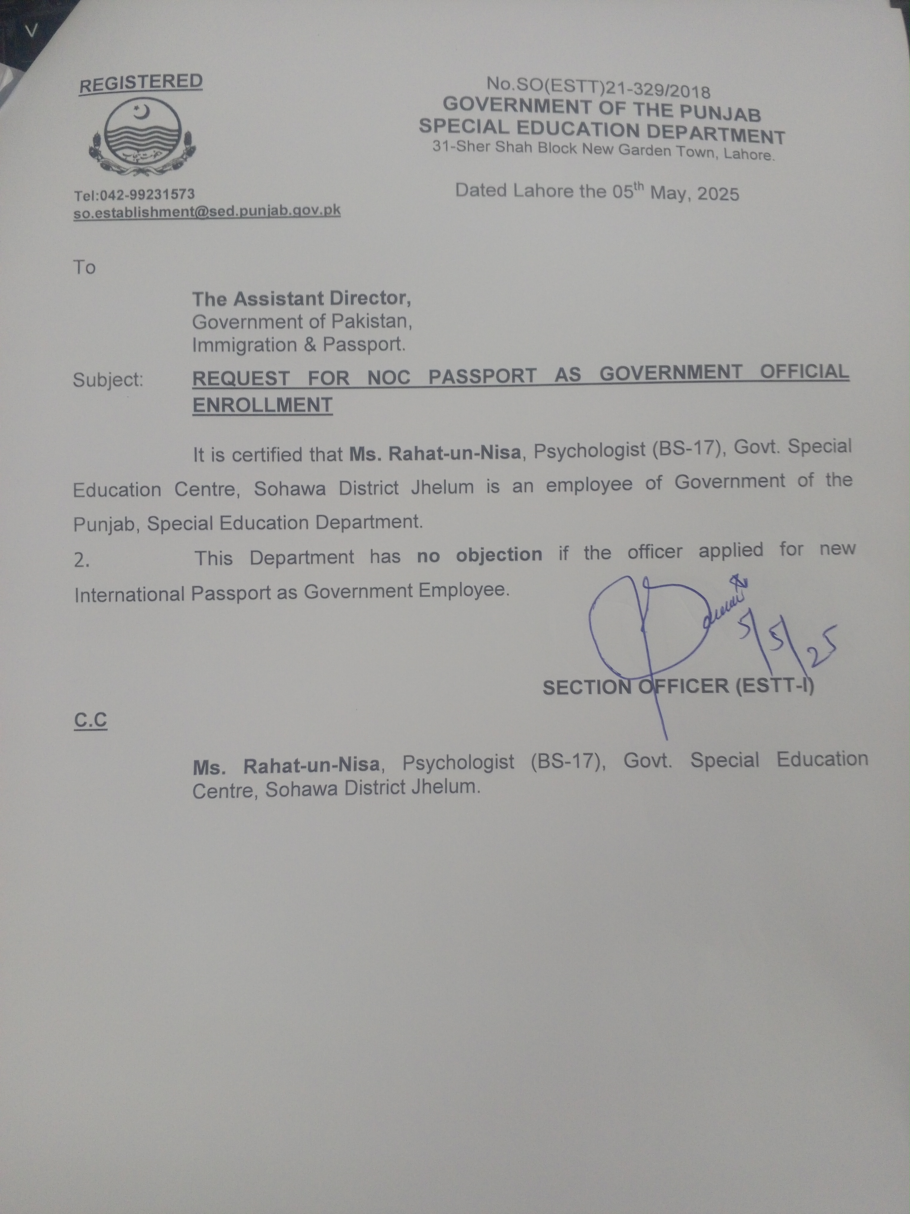 Noc For Passport |
