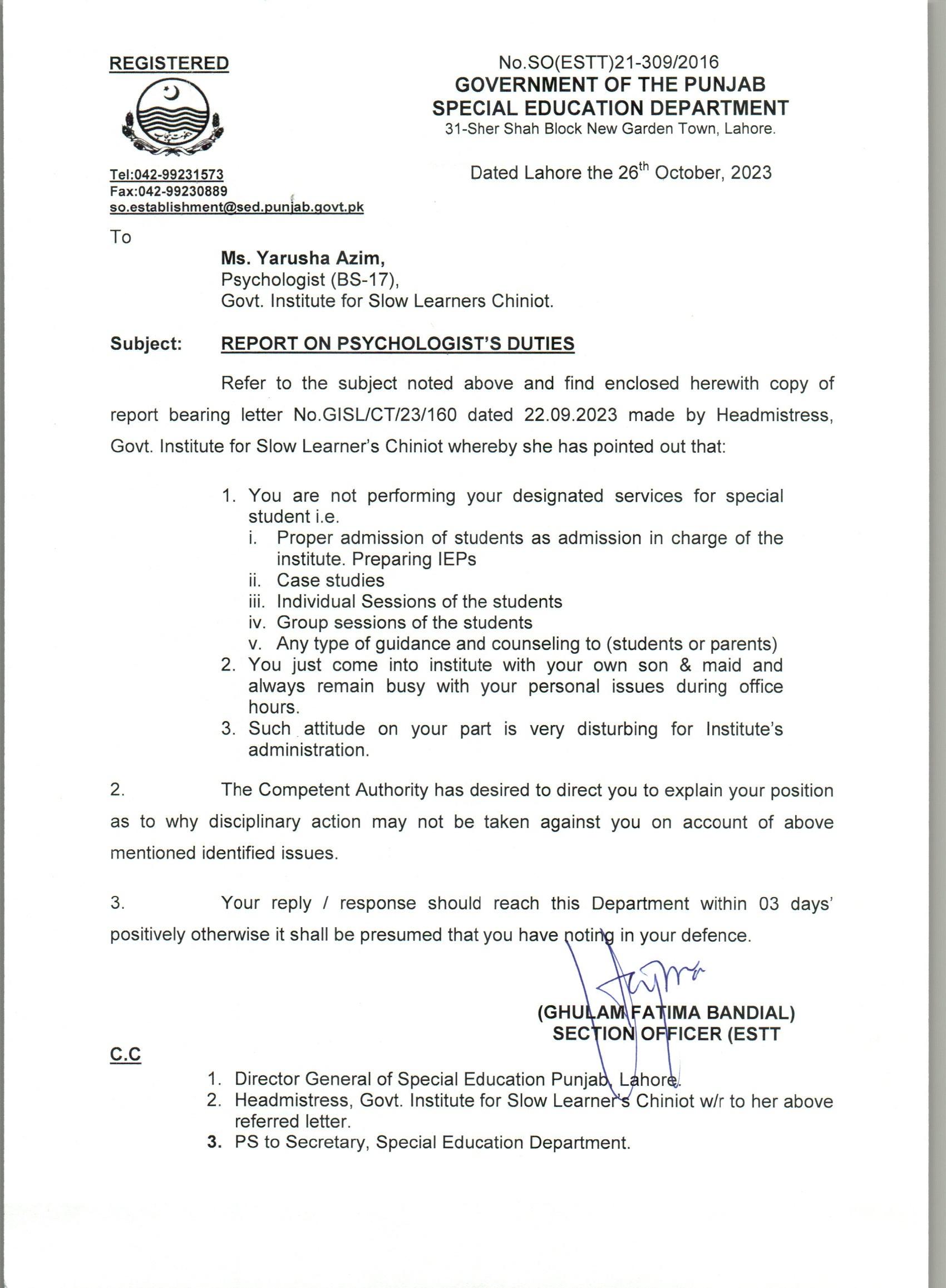 Report on Psychologist's Duties |