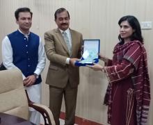 Chief Minister Punjab presented a shield to Secretary Special Education Punjab Ms. Saima Saeed on achieving 100% vaccination target under Punjab RED Campaign