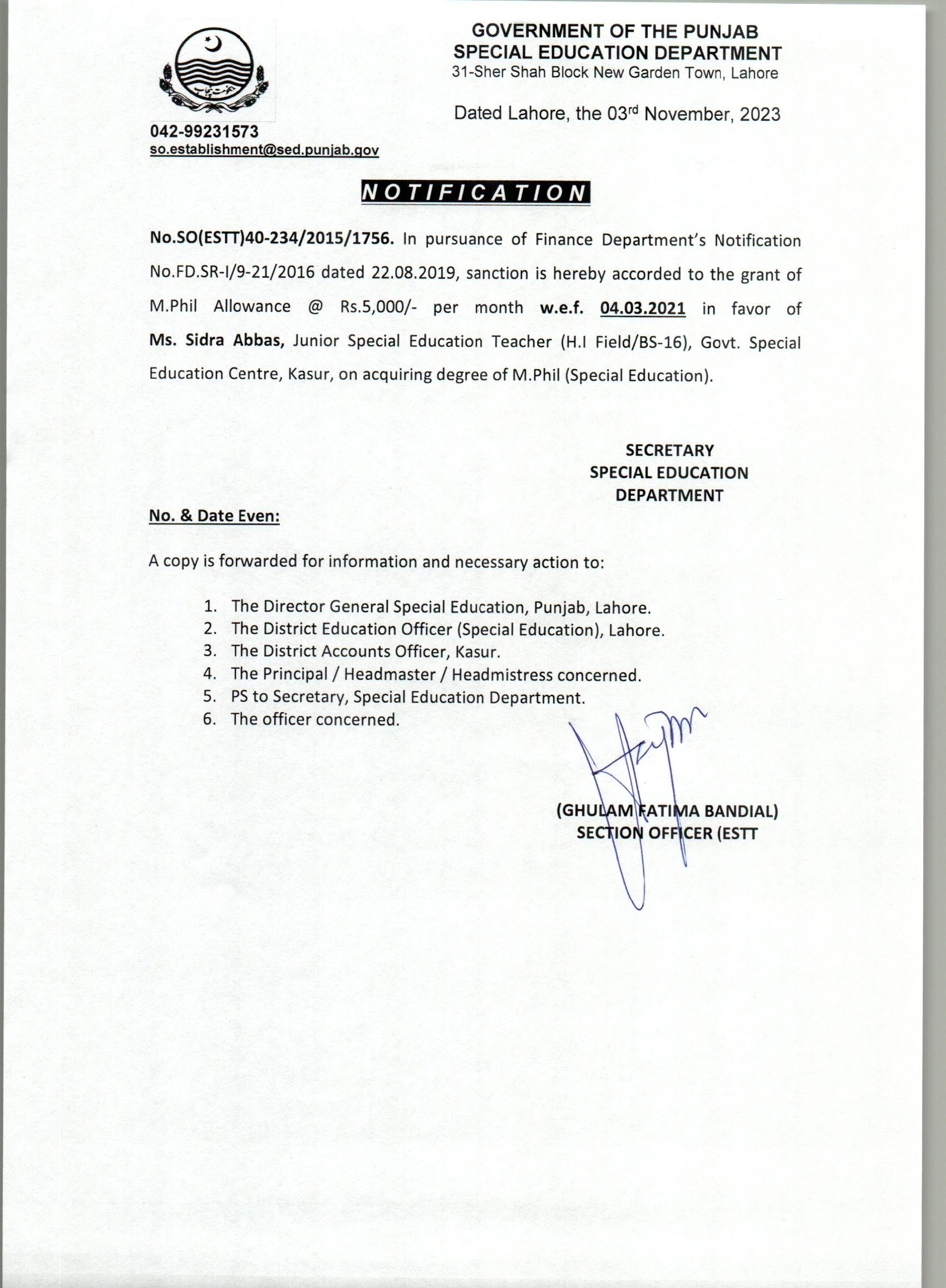 M.Phil Allowance (Substitute) |