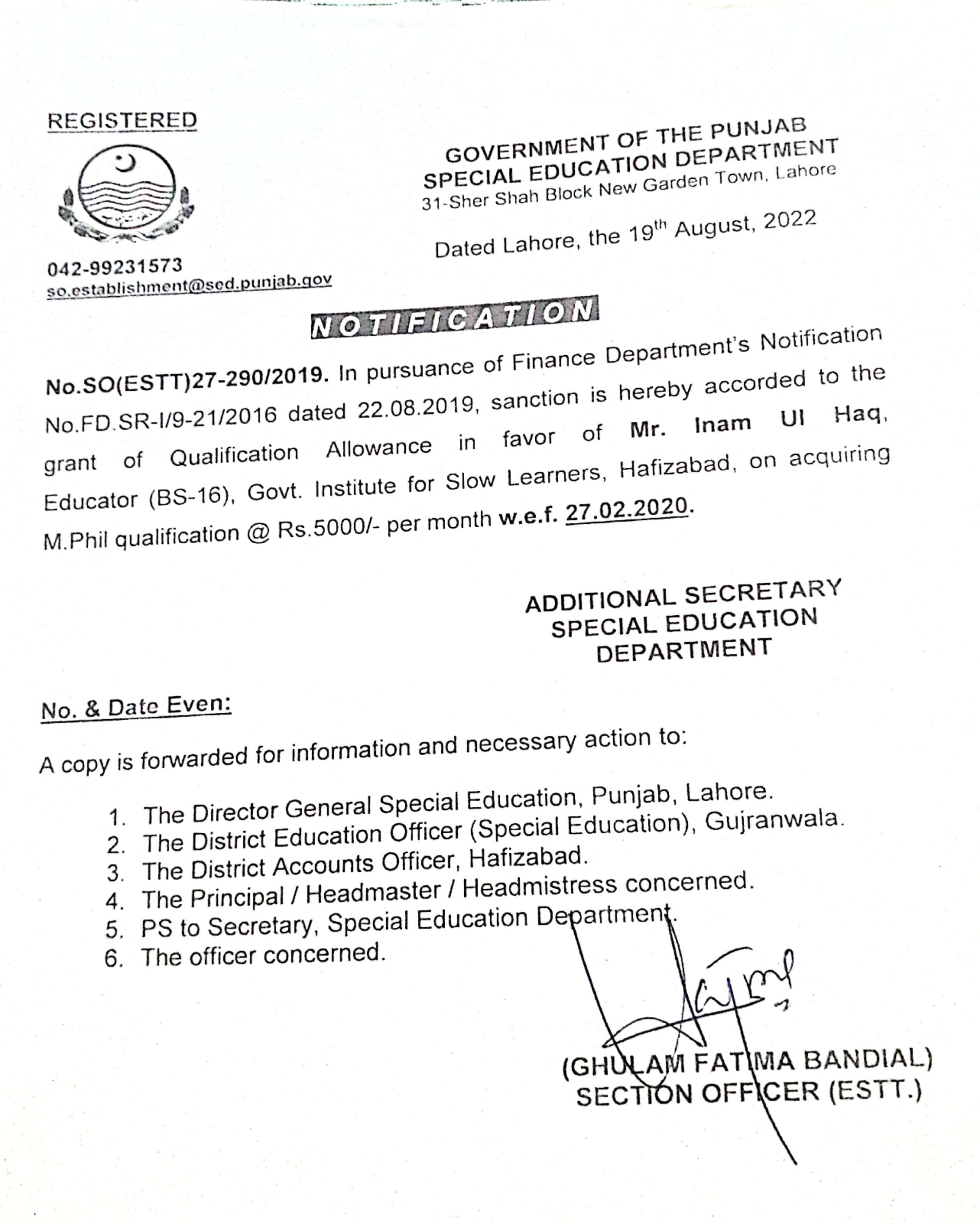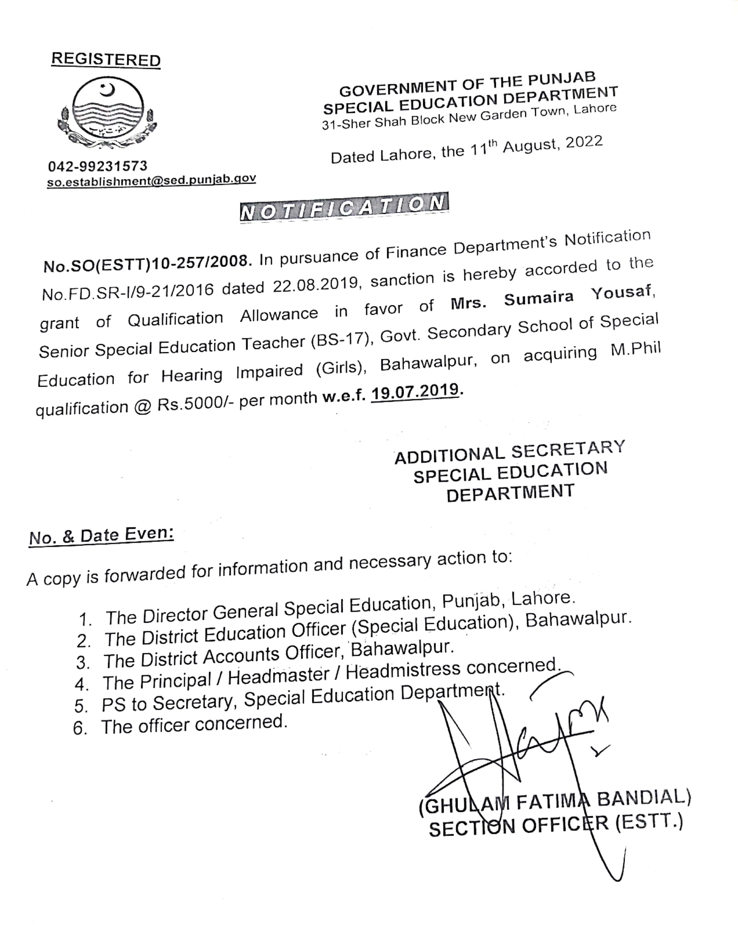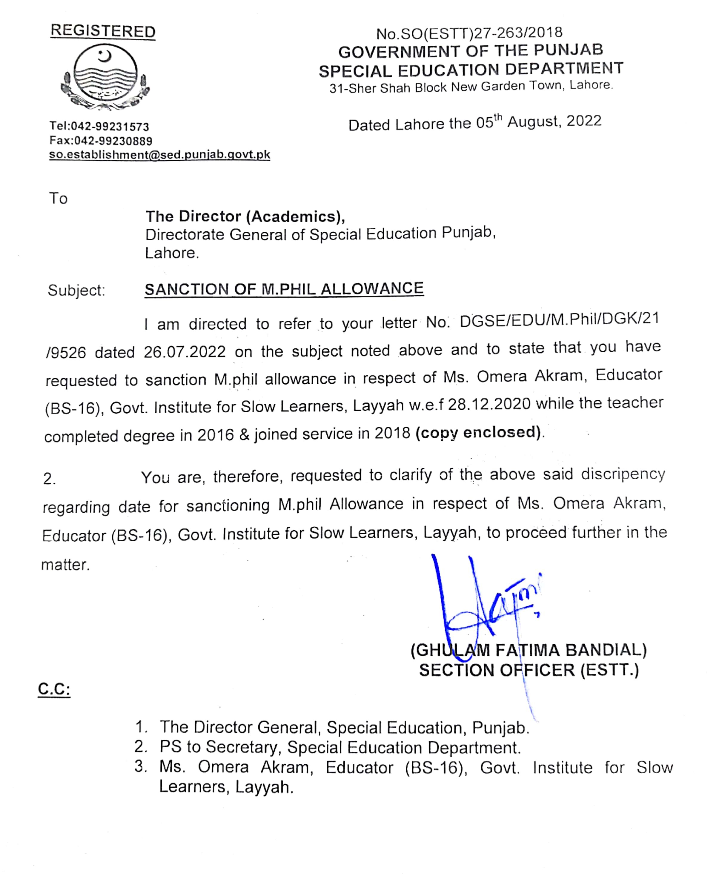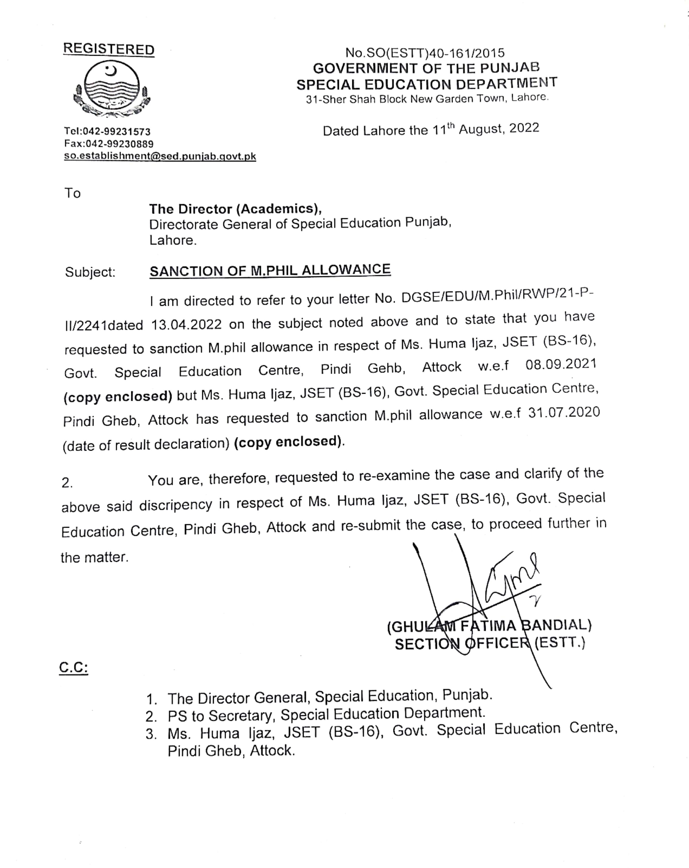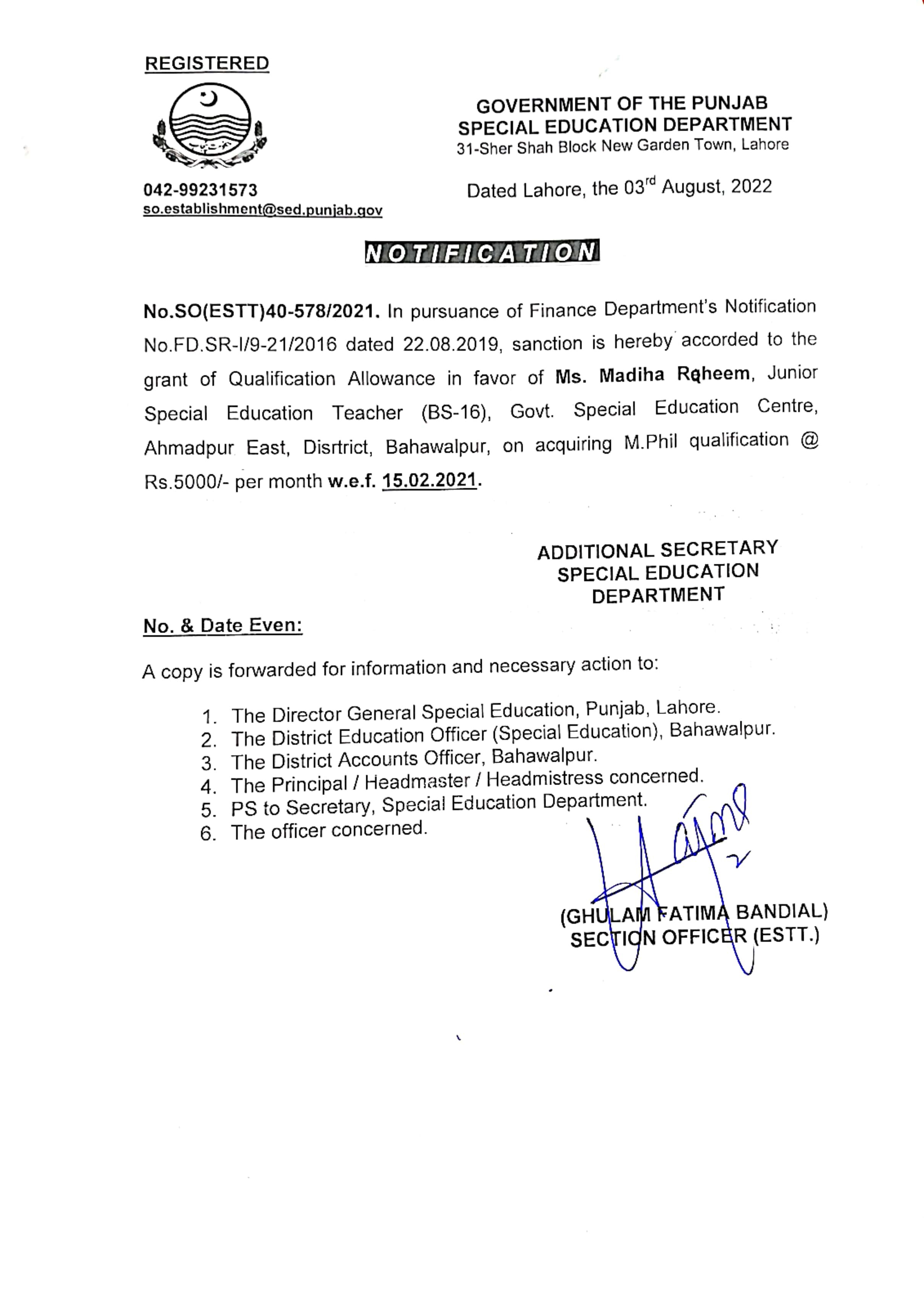Reply (Request for Sanction of Qualification Allowance) |