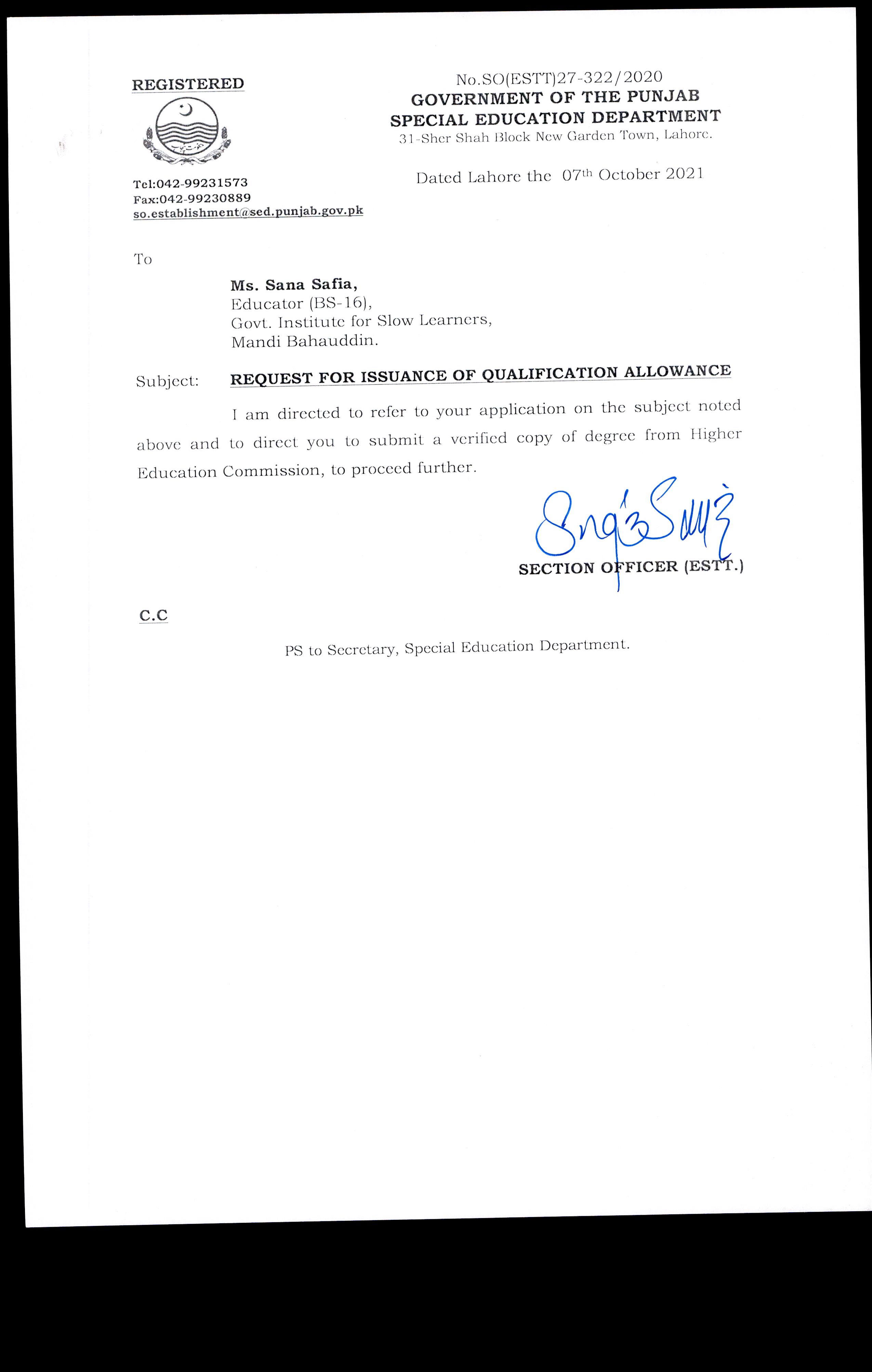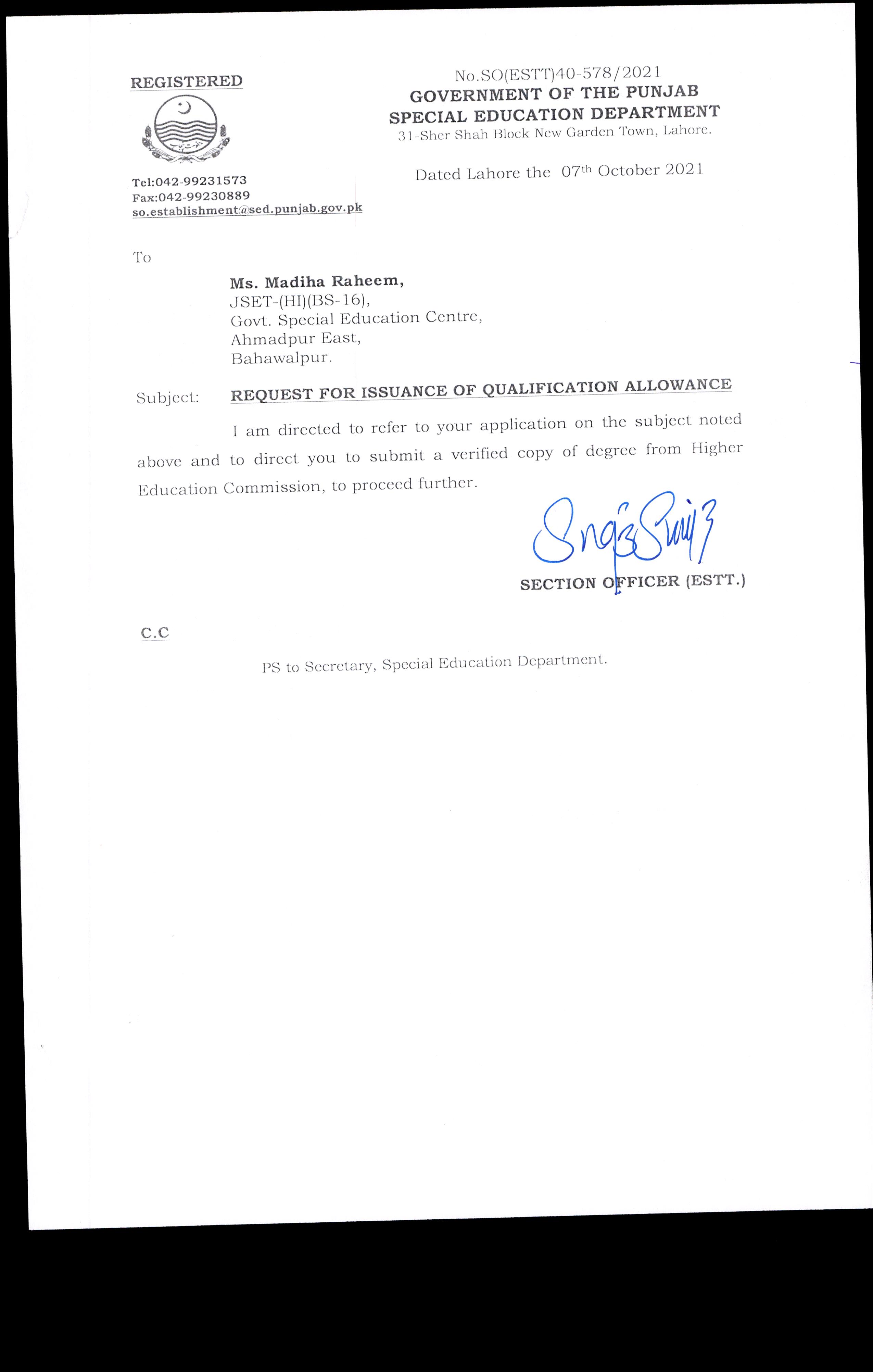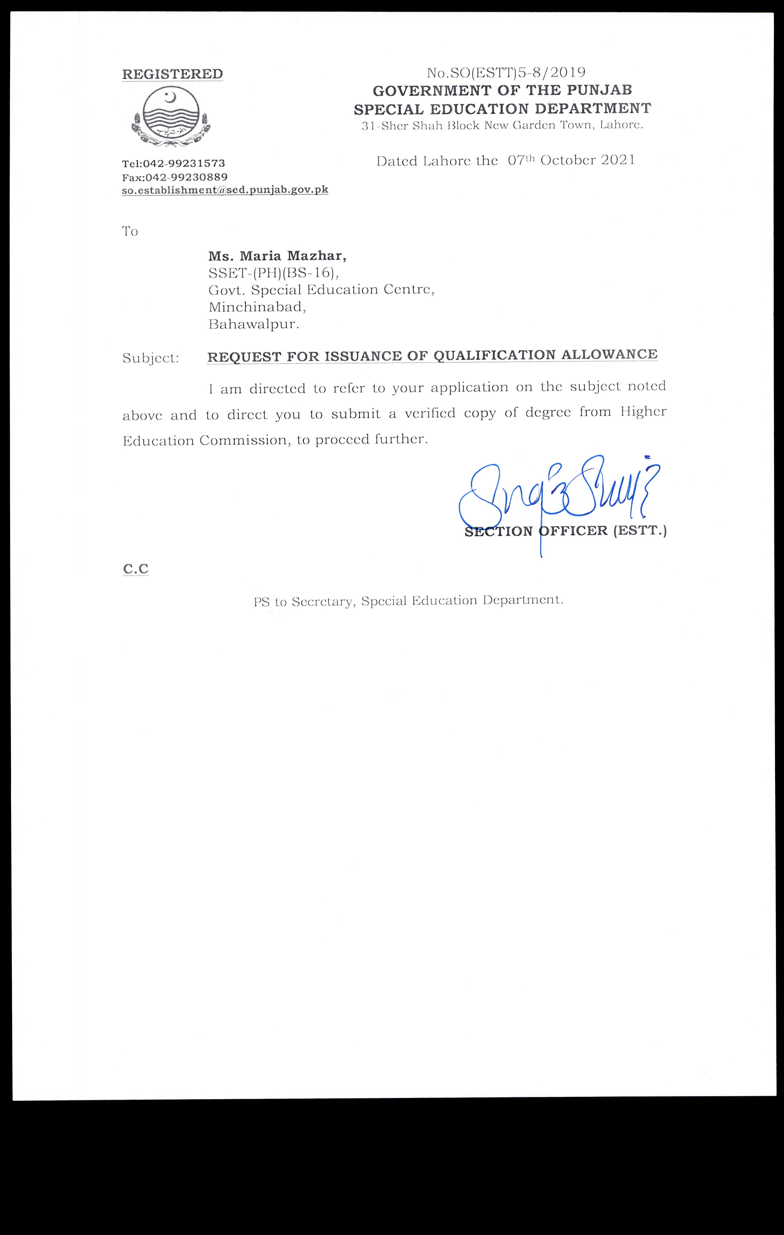 Reply on (REQUEST FOR ISSUANCE OF QUALIFICATION ALLOWANCE) |