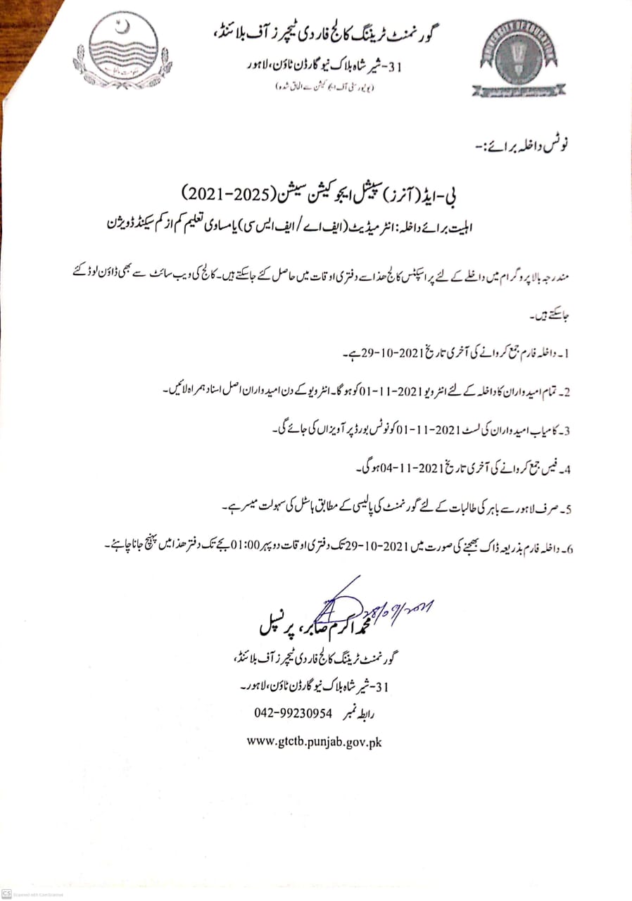 Admission open for B.ED (Hons) Special Education Session 2021-2025 last date for submission of application is 29-10-2021 for detail clik here.