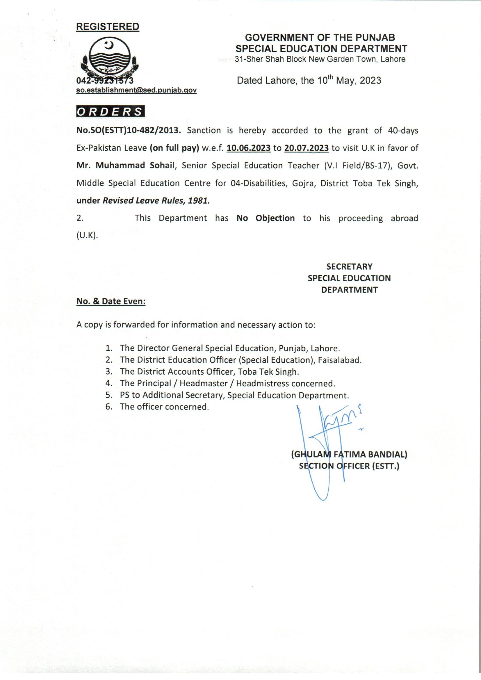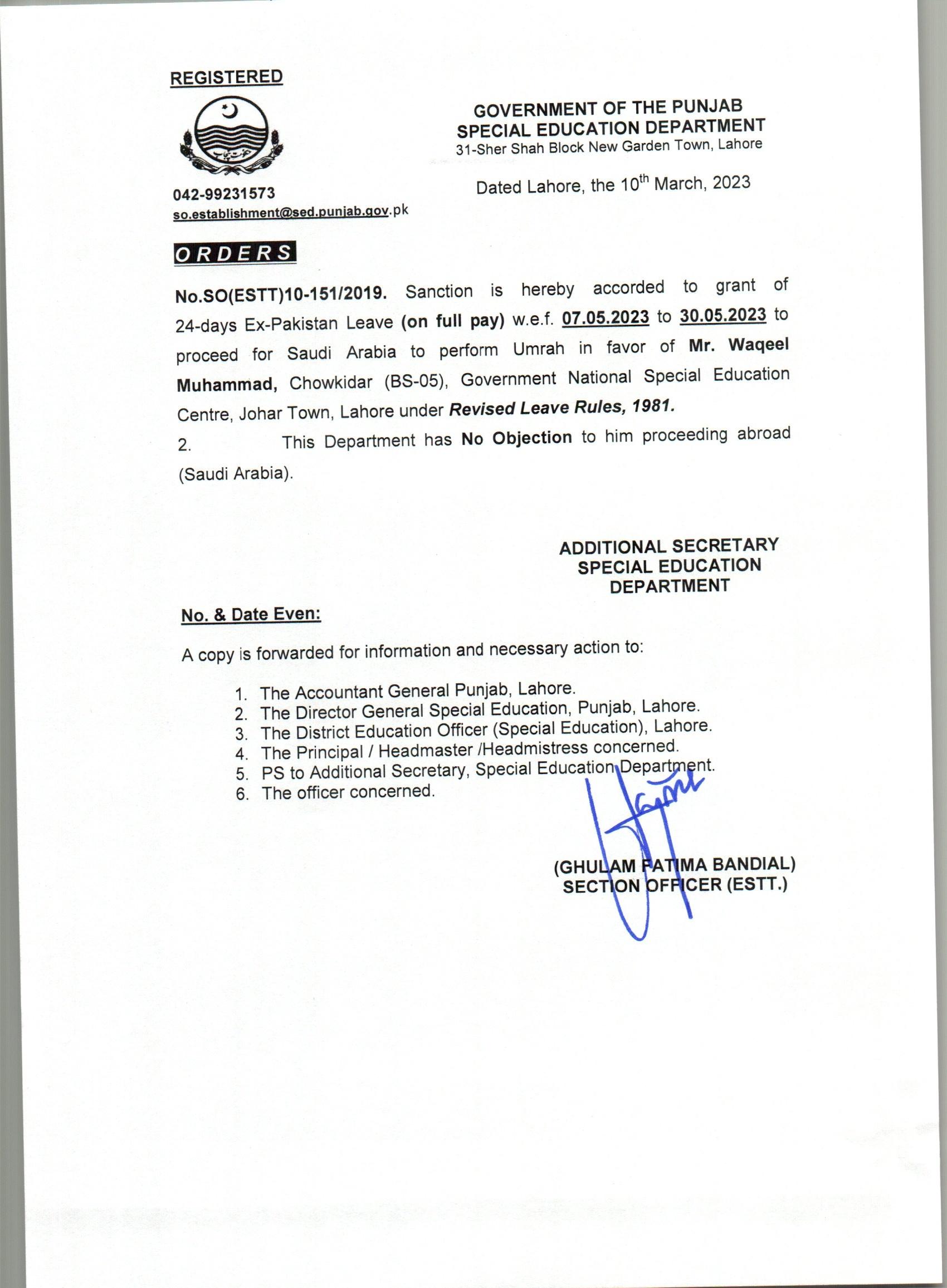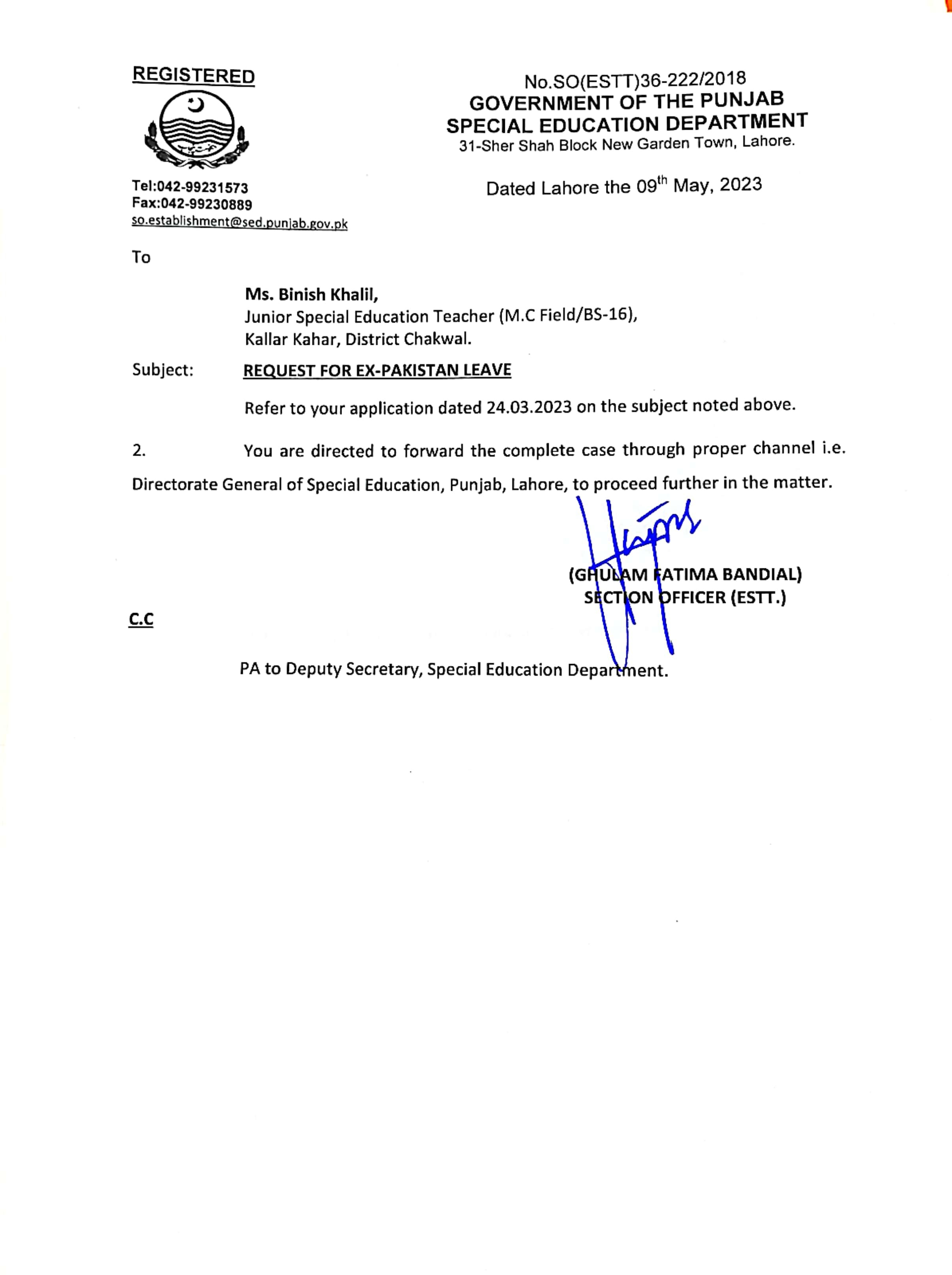 Reply (Request for Ex-Pakistan Leave) |