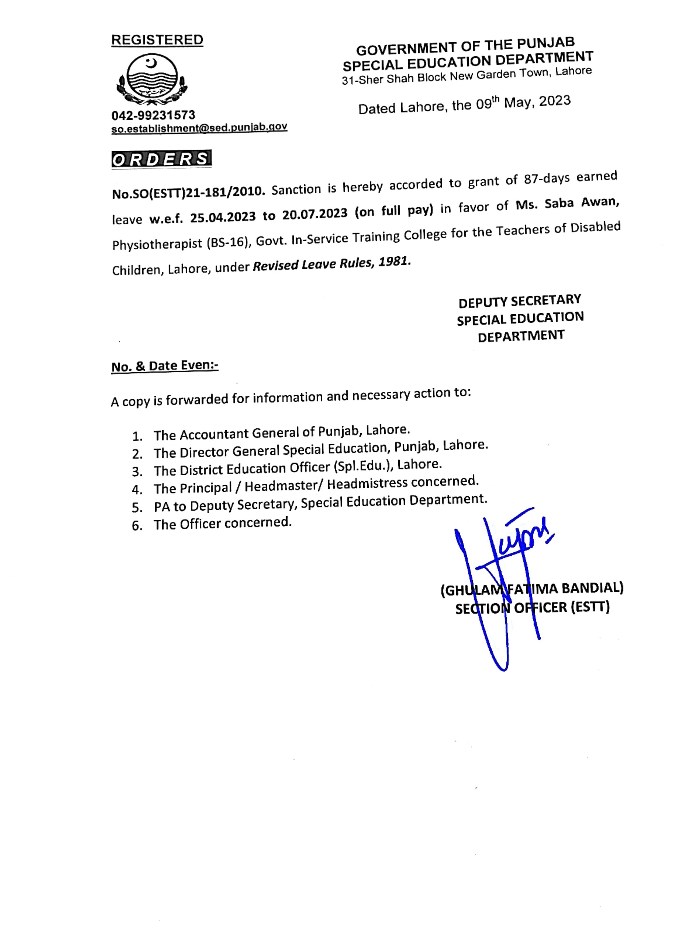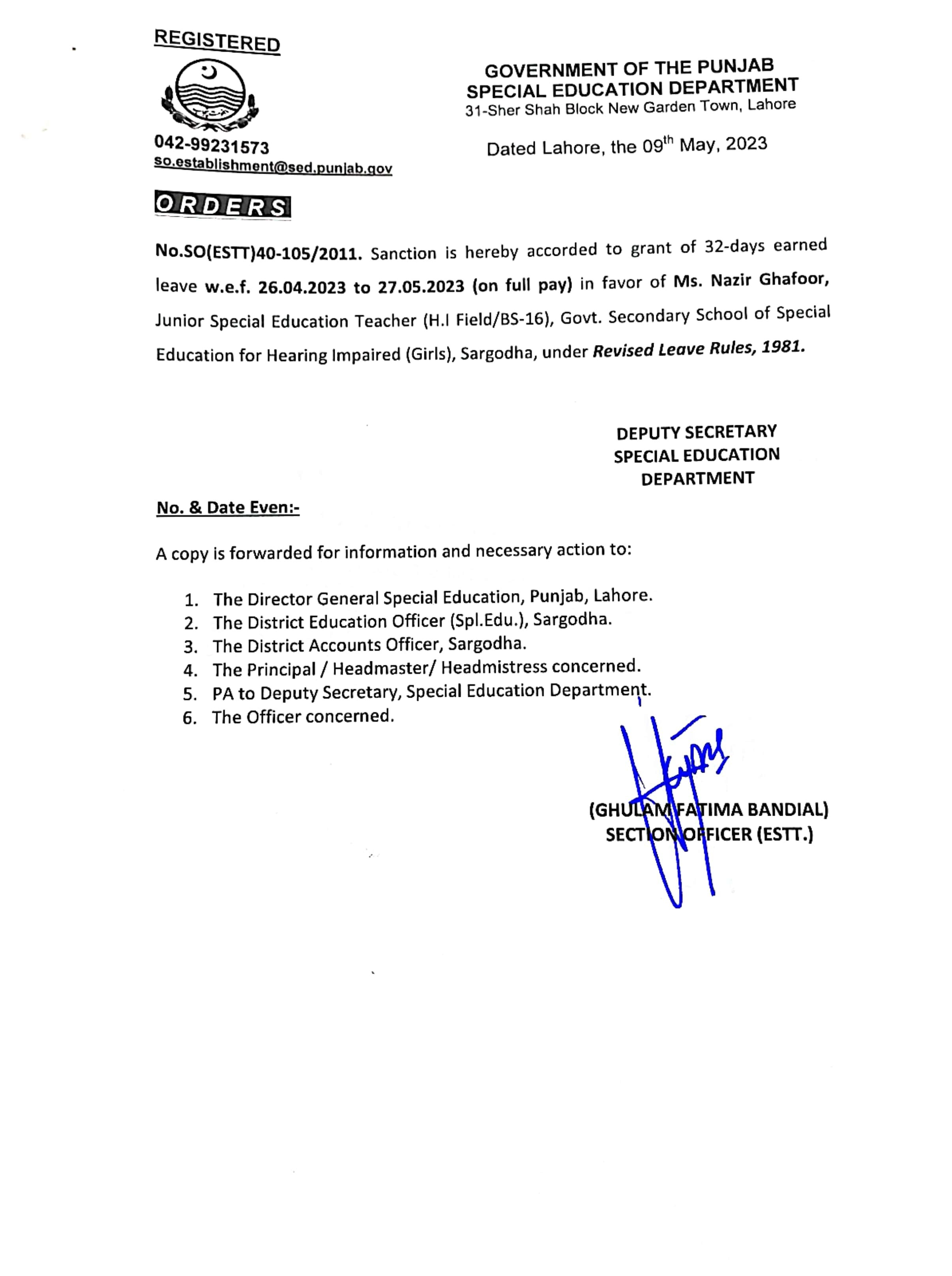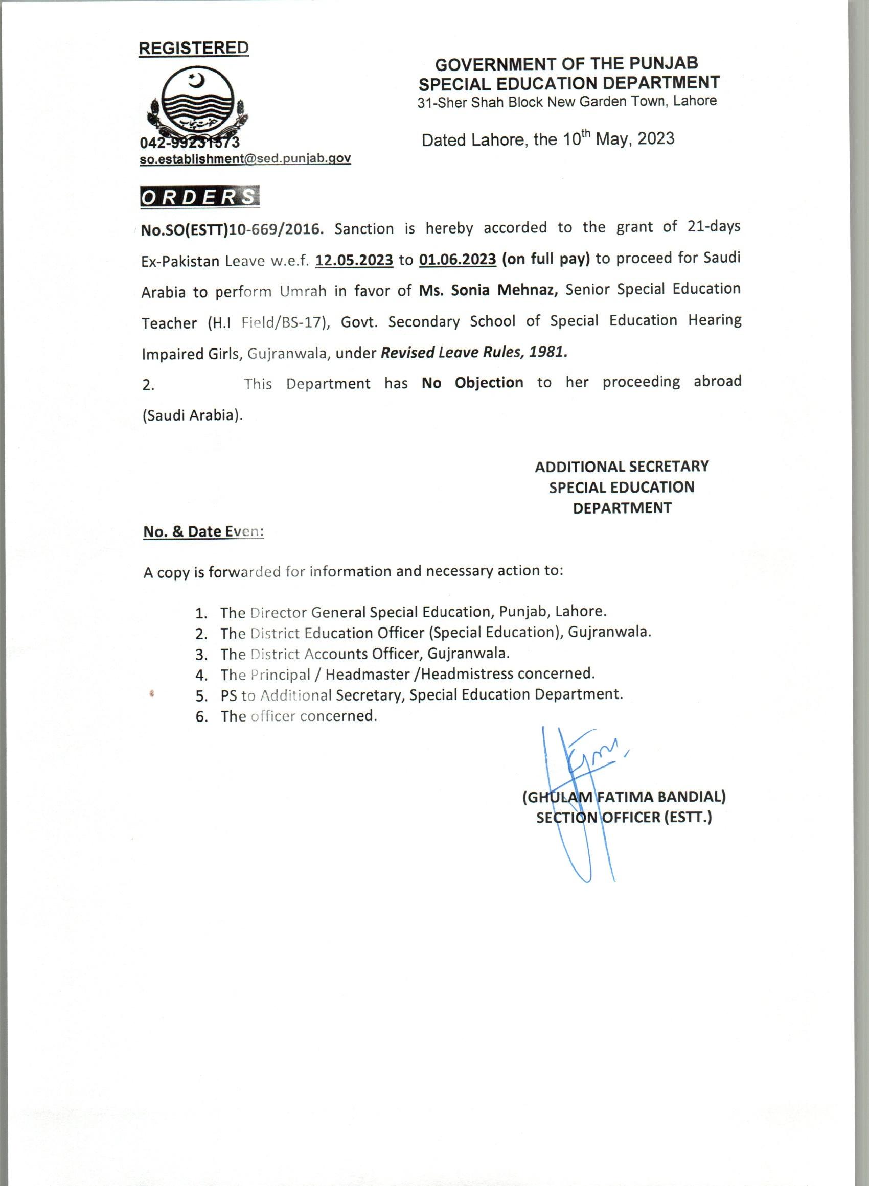 Reply (Request for Ex-Pakistan Leave) |