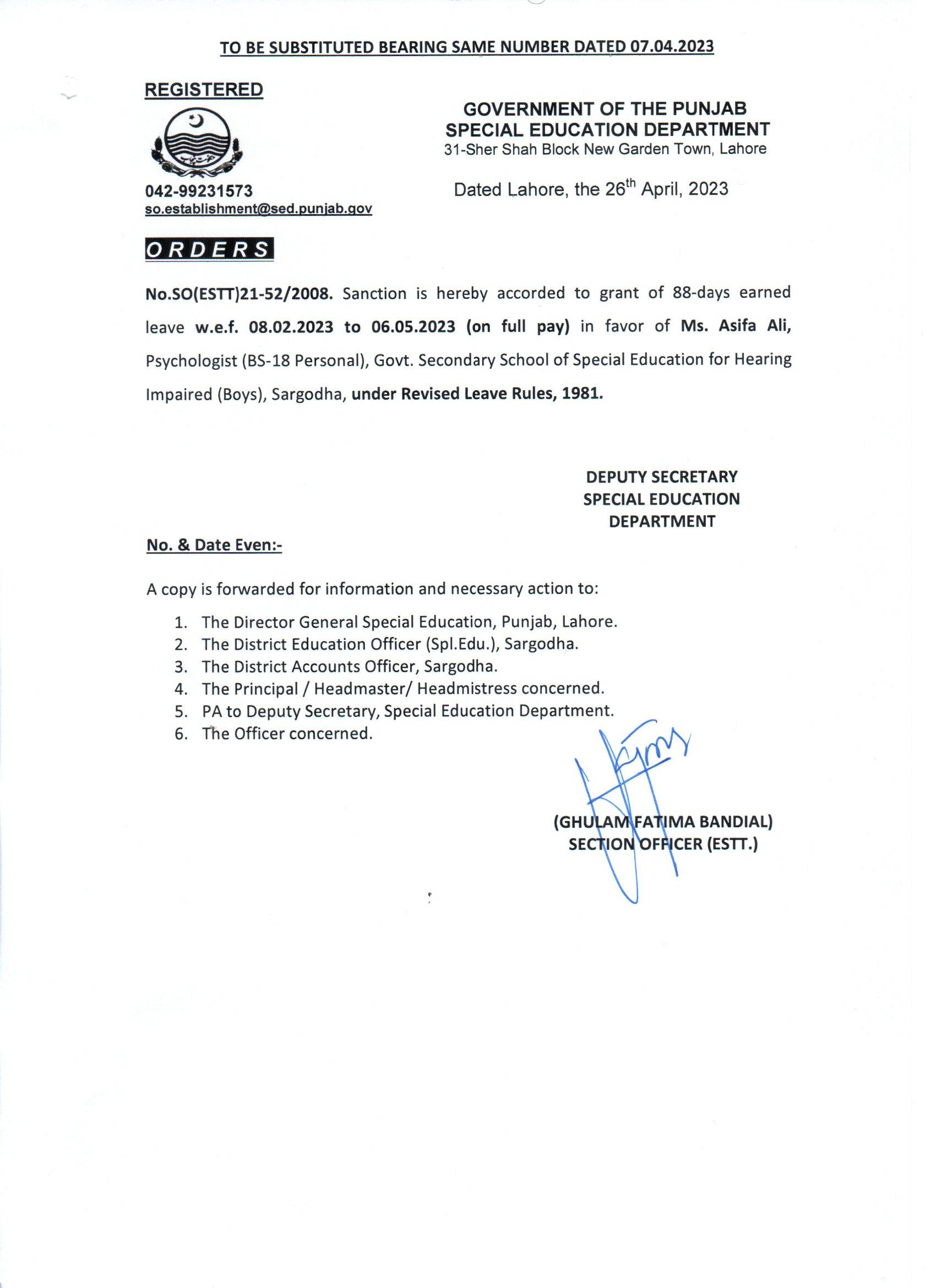 Earned Leave (Substituted) |