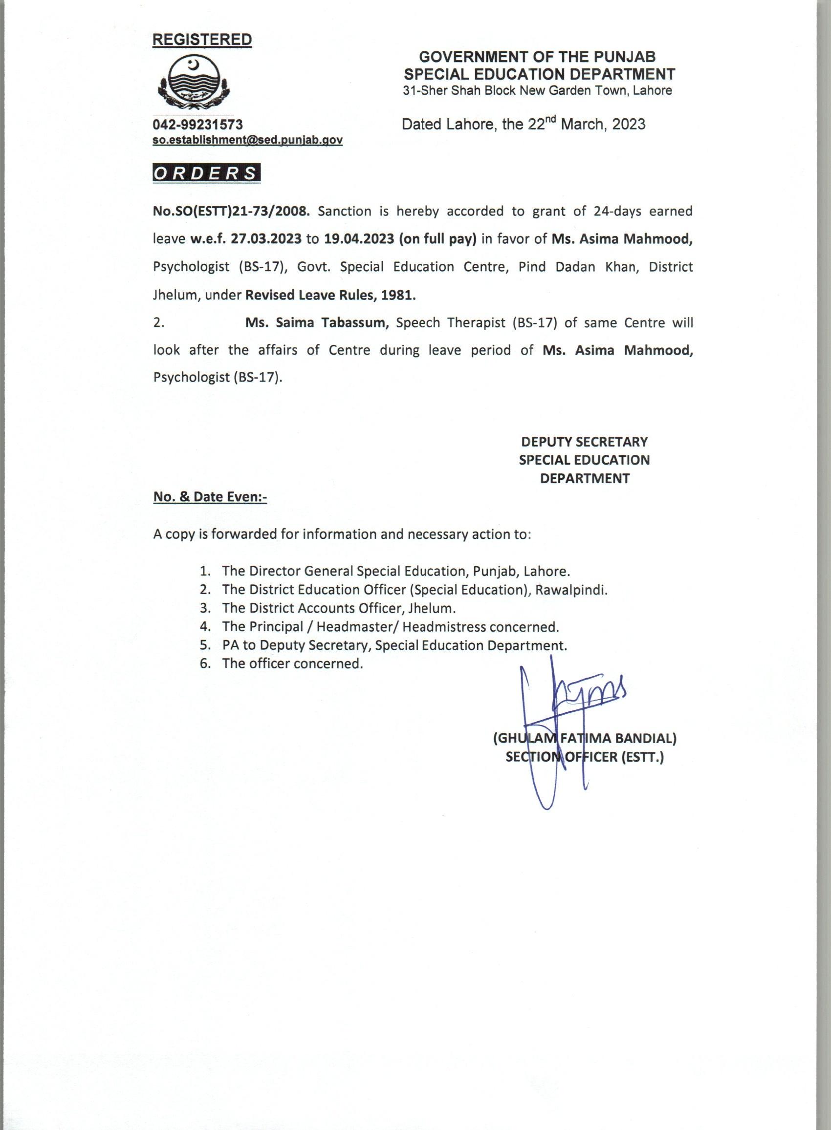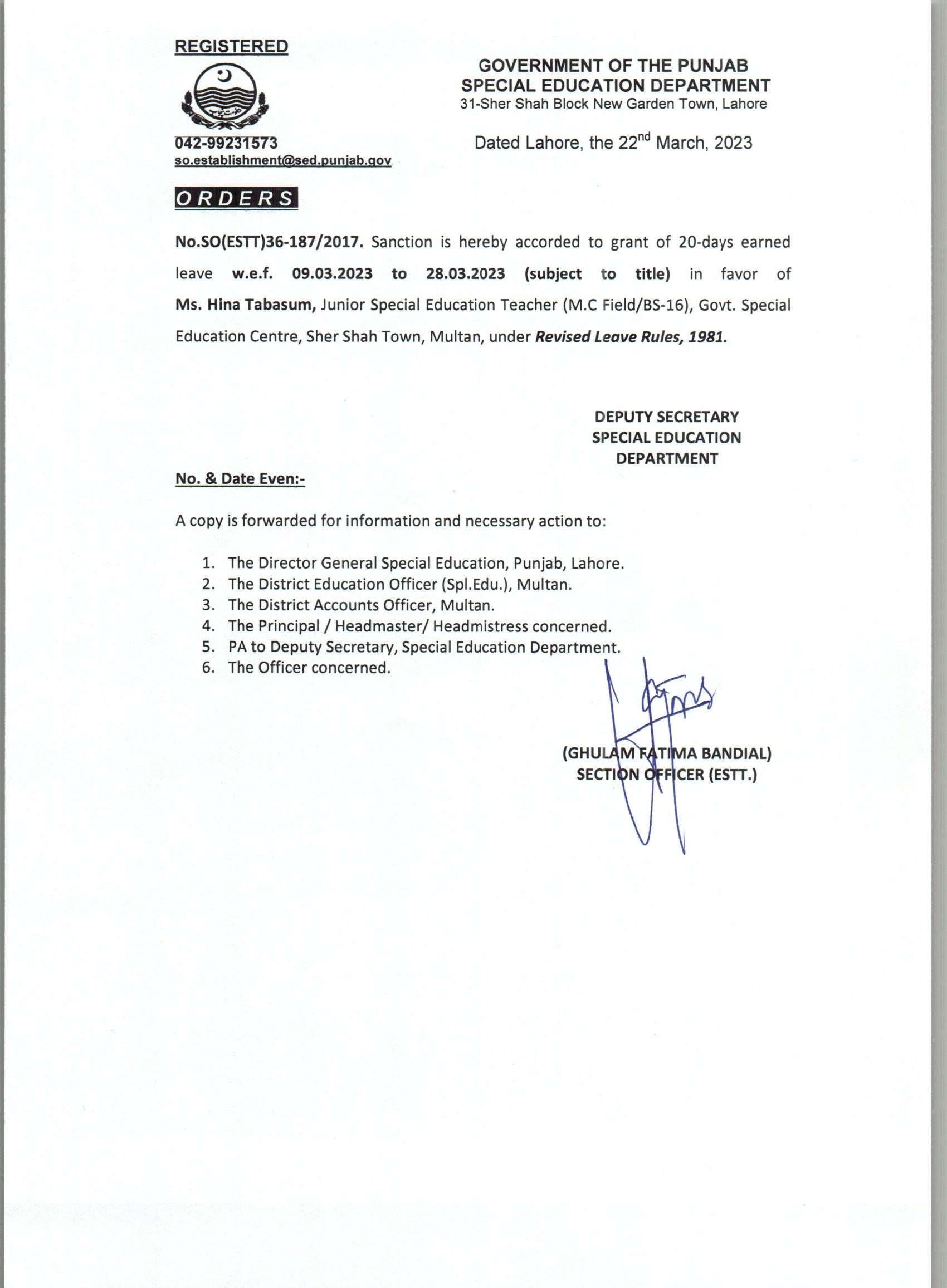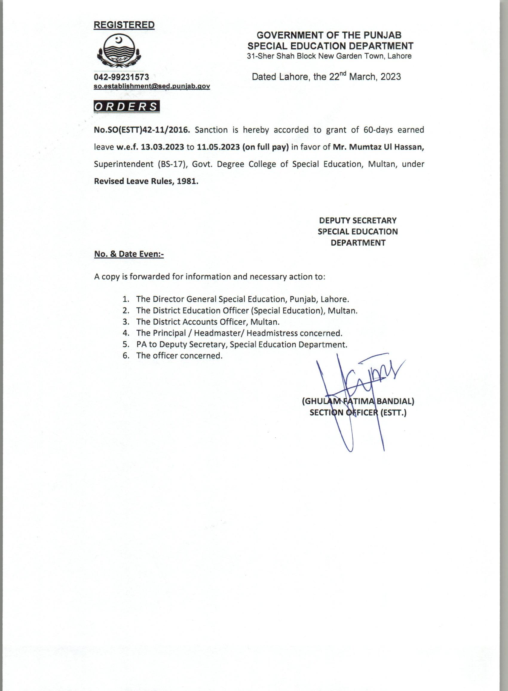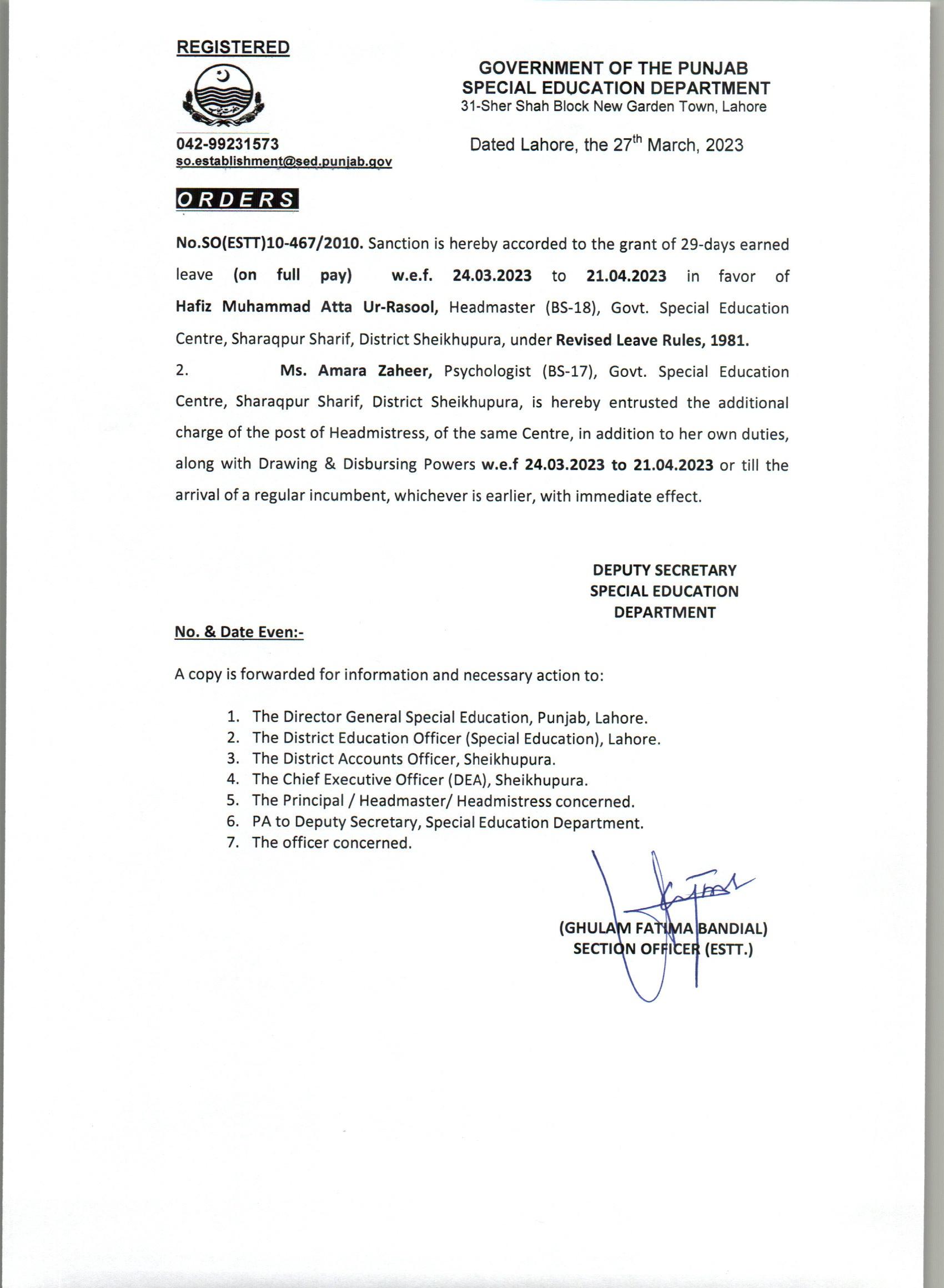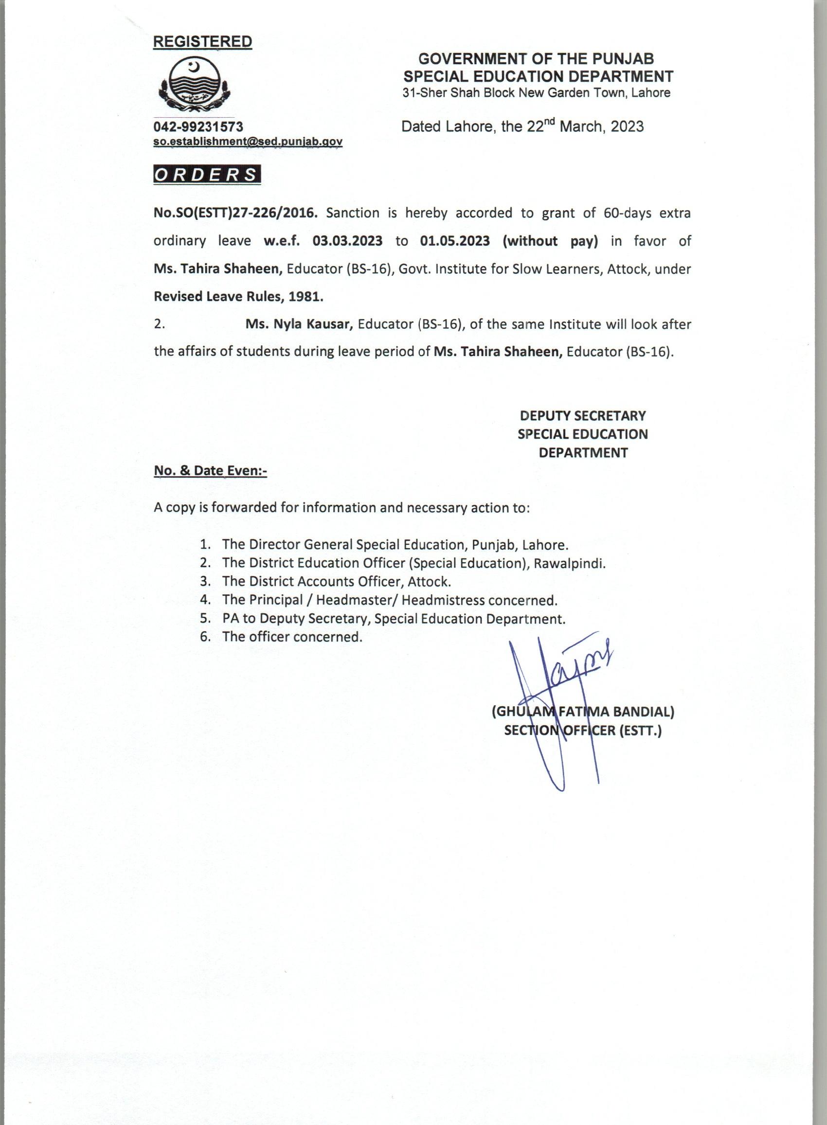 Extra Ordinary Leave |