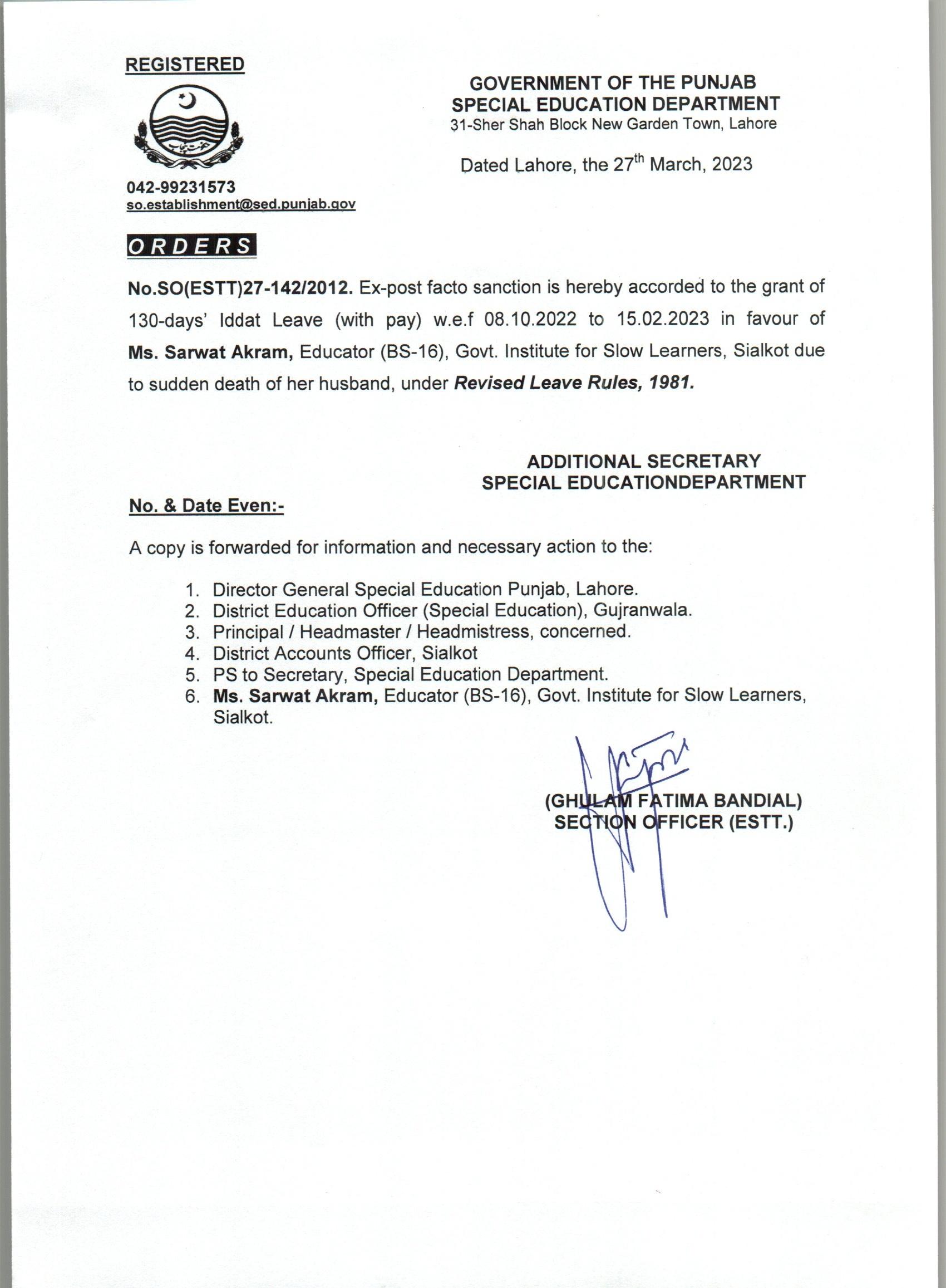 Iddat Leave |