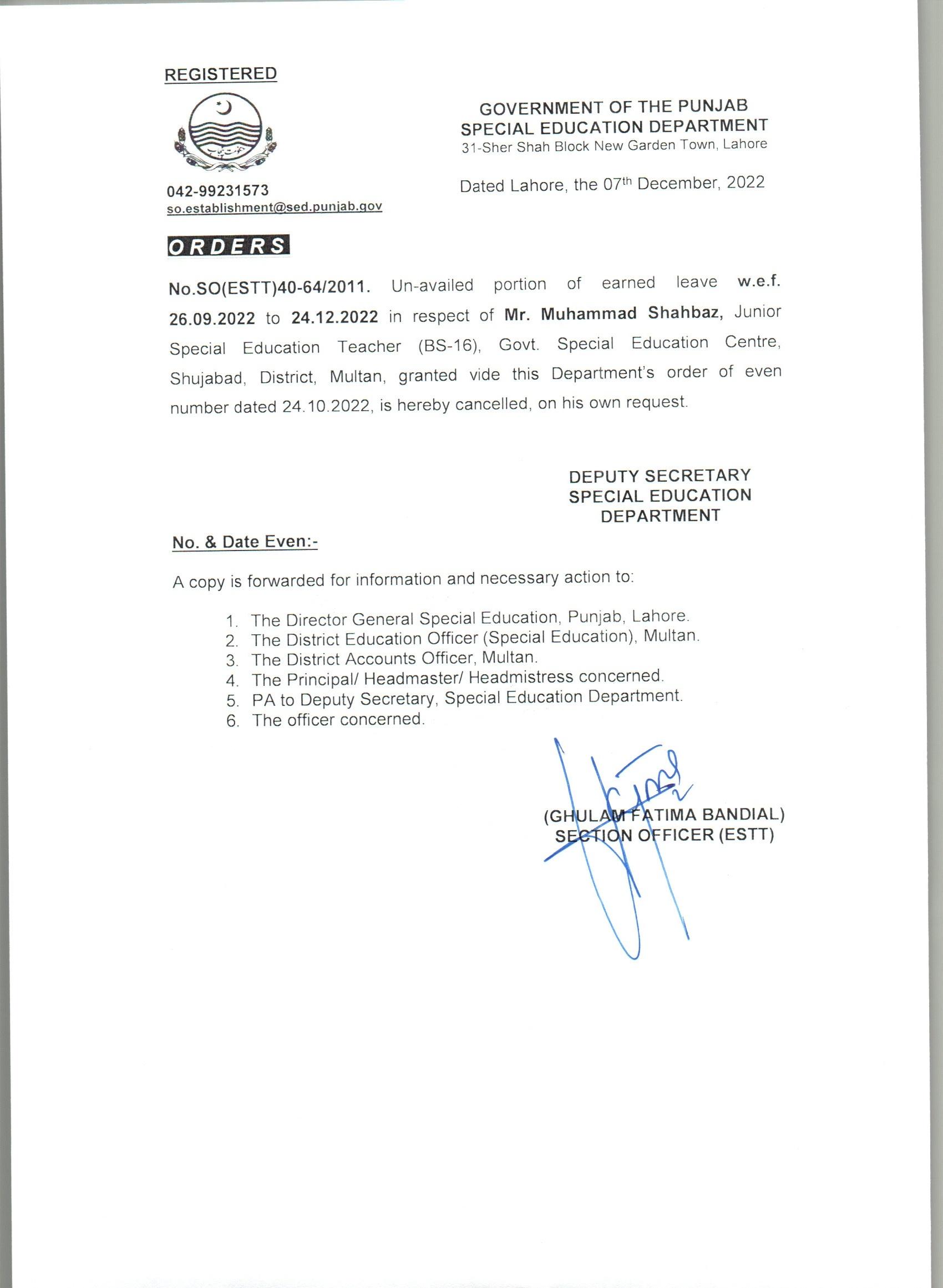 Cancellation of Earned Leave |