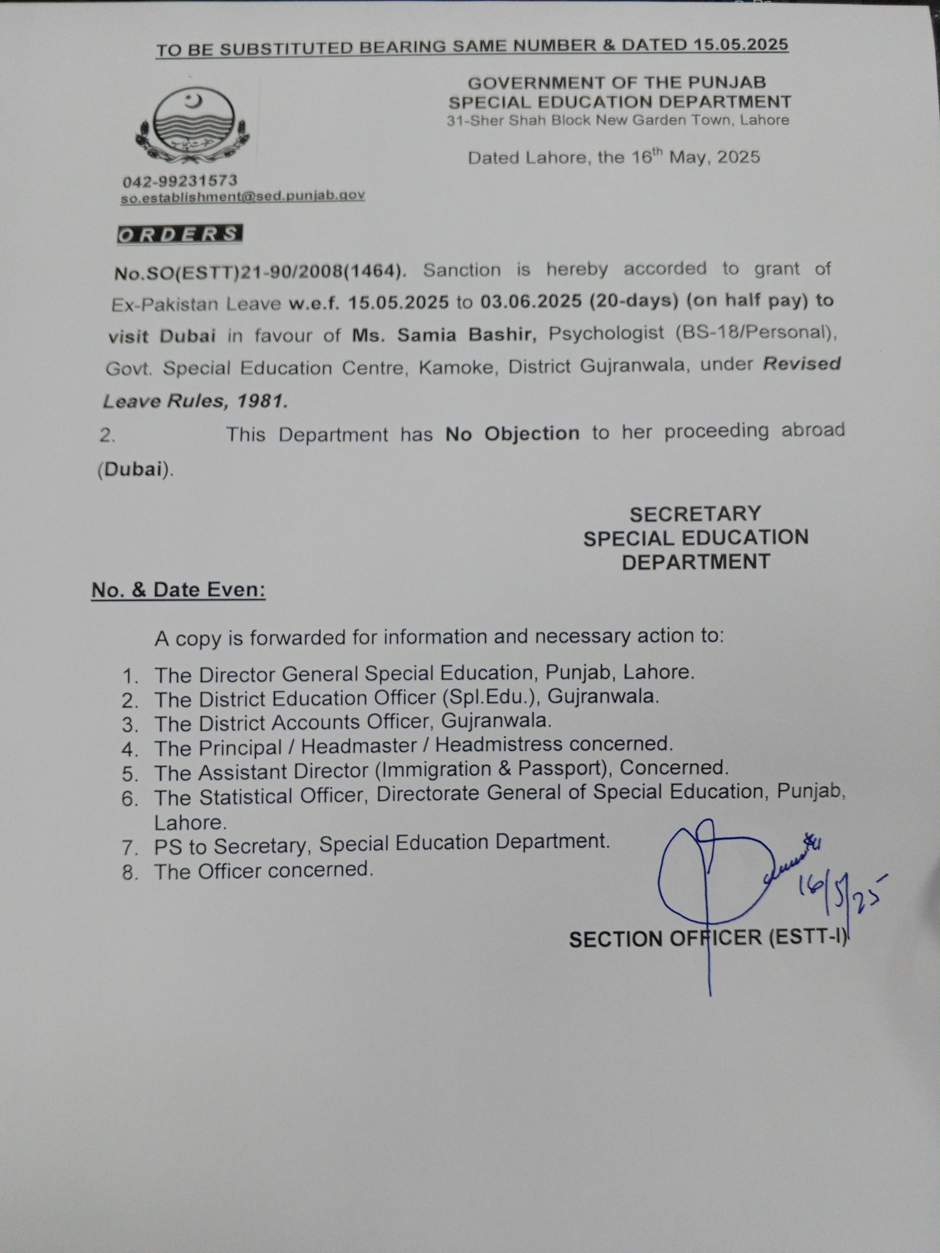 Extra Ordinary Leave |
