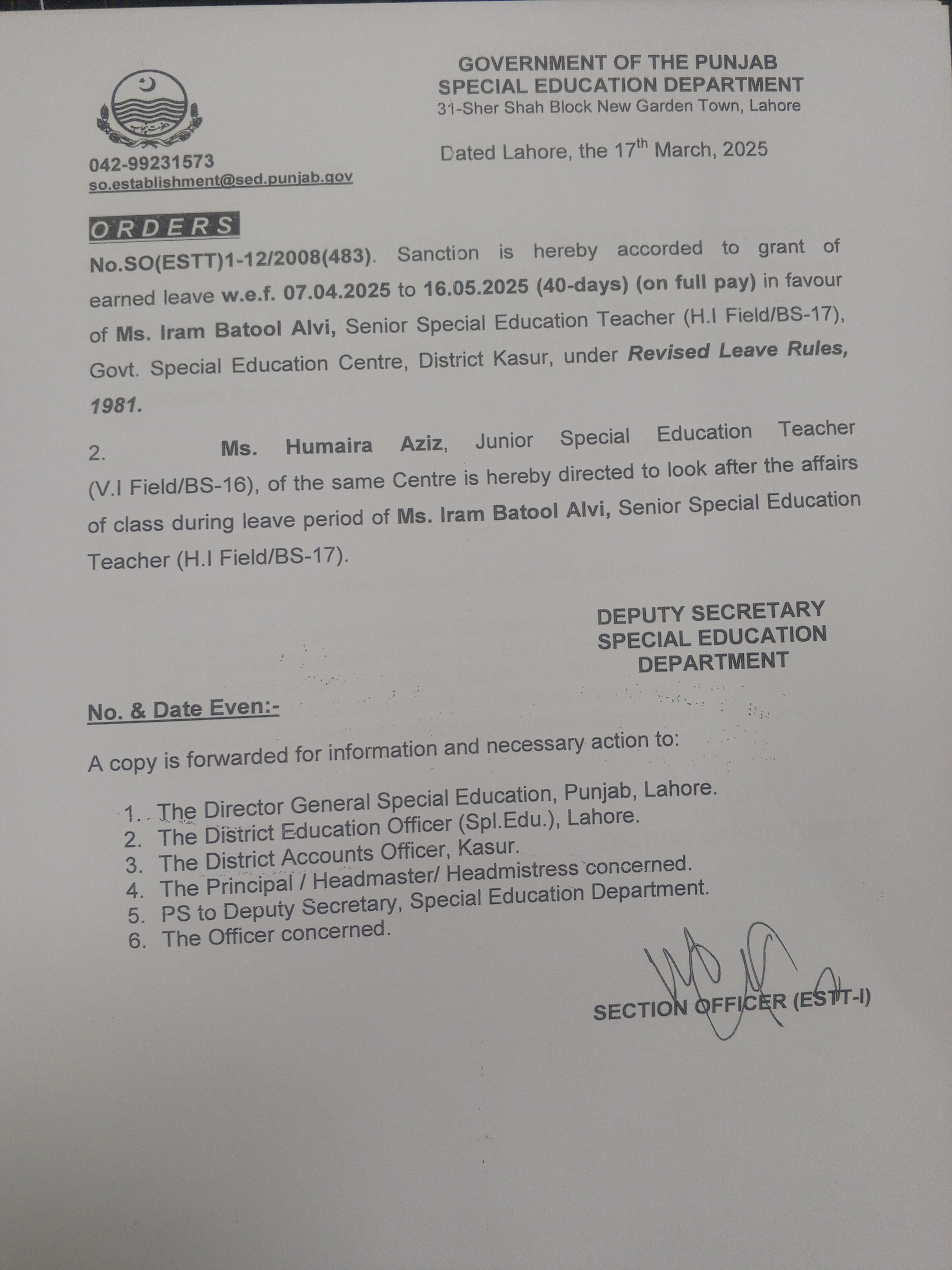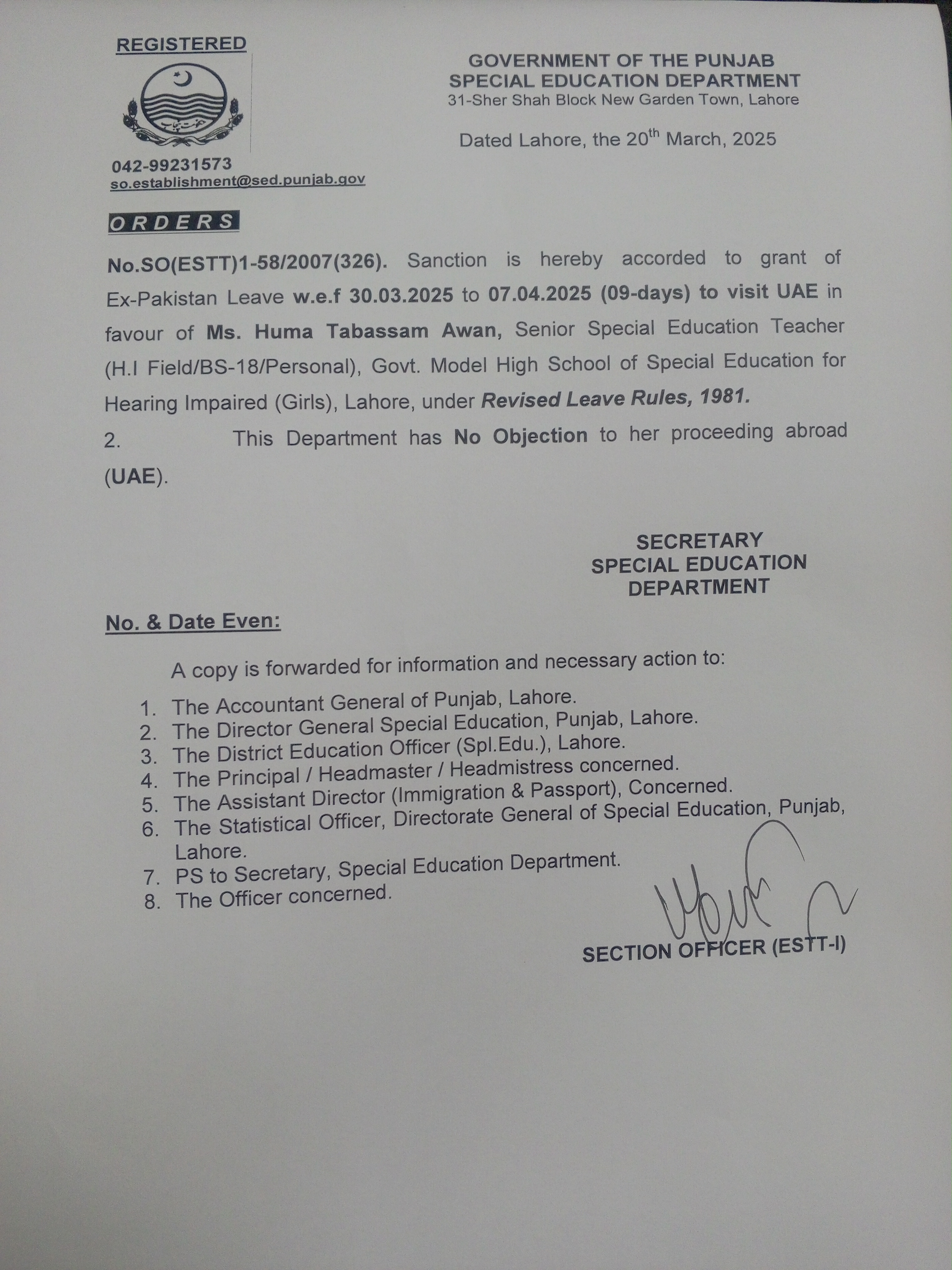Extra Ordinary Leave |