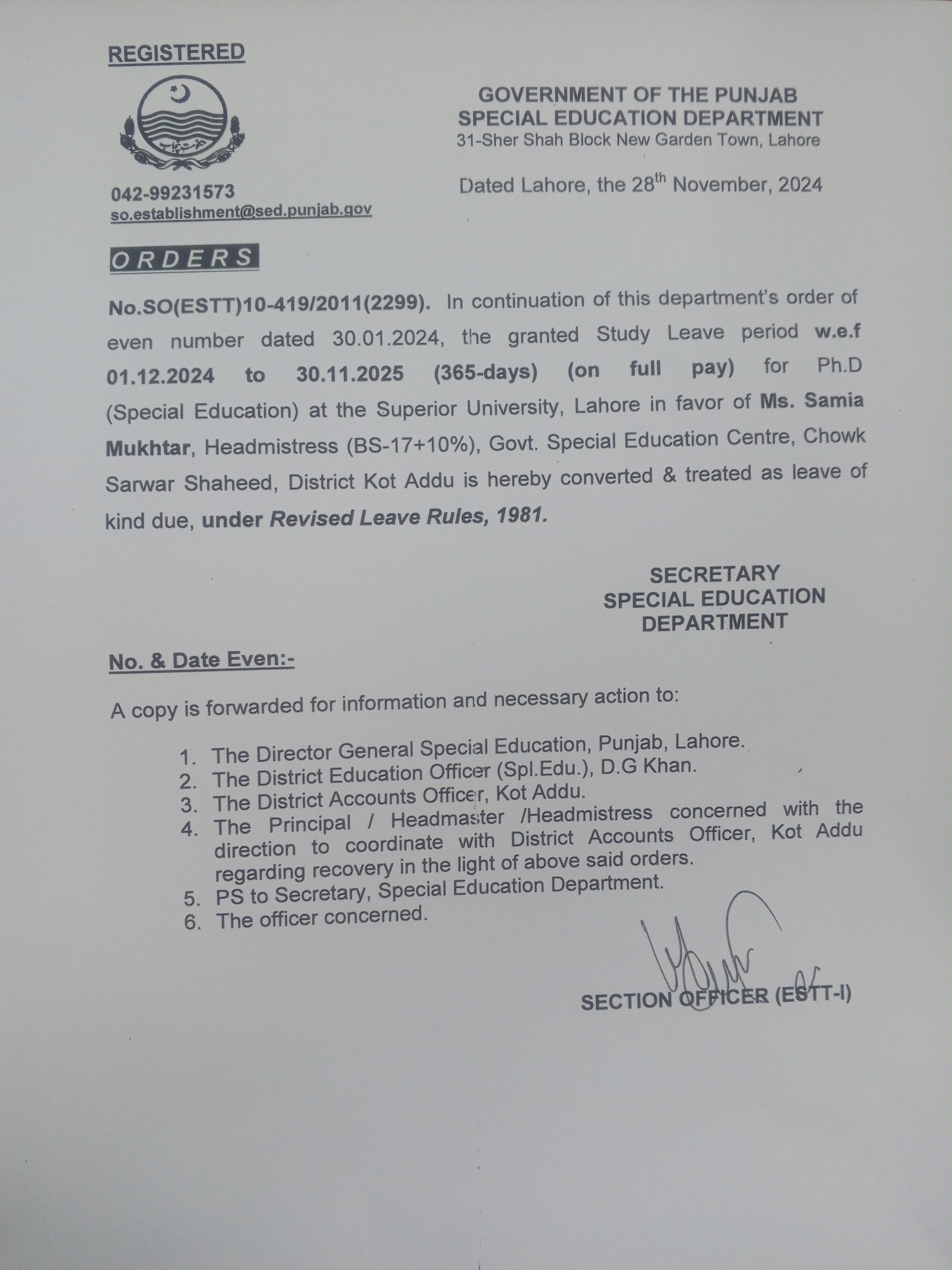 Extra Ordinary Leave |