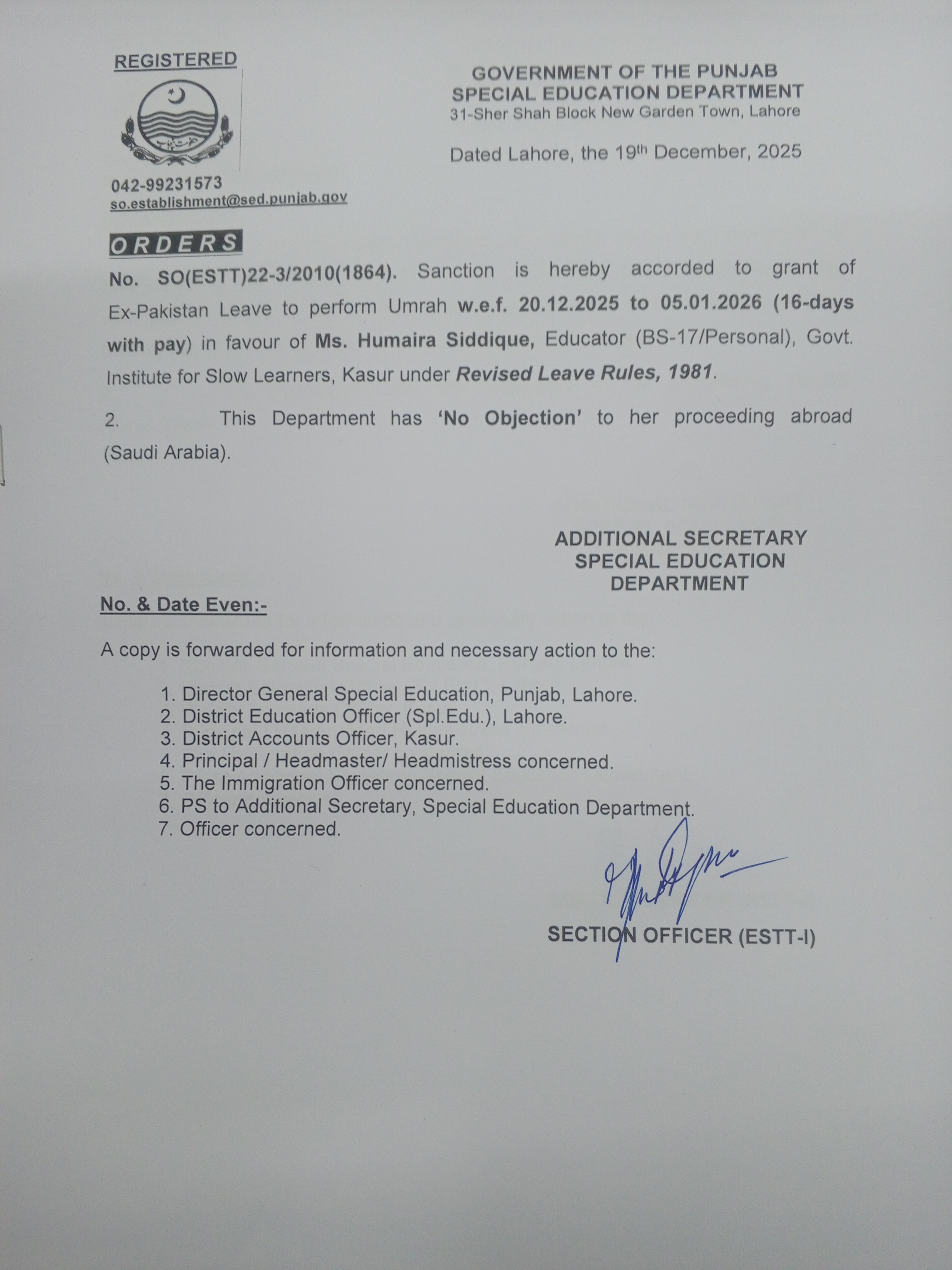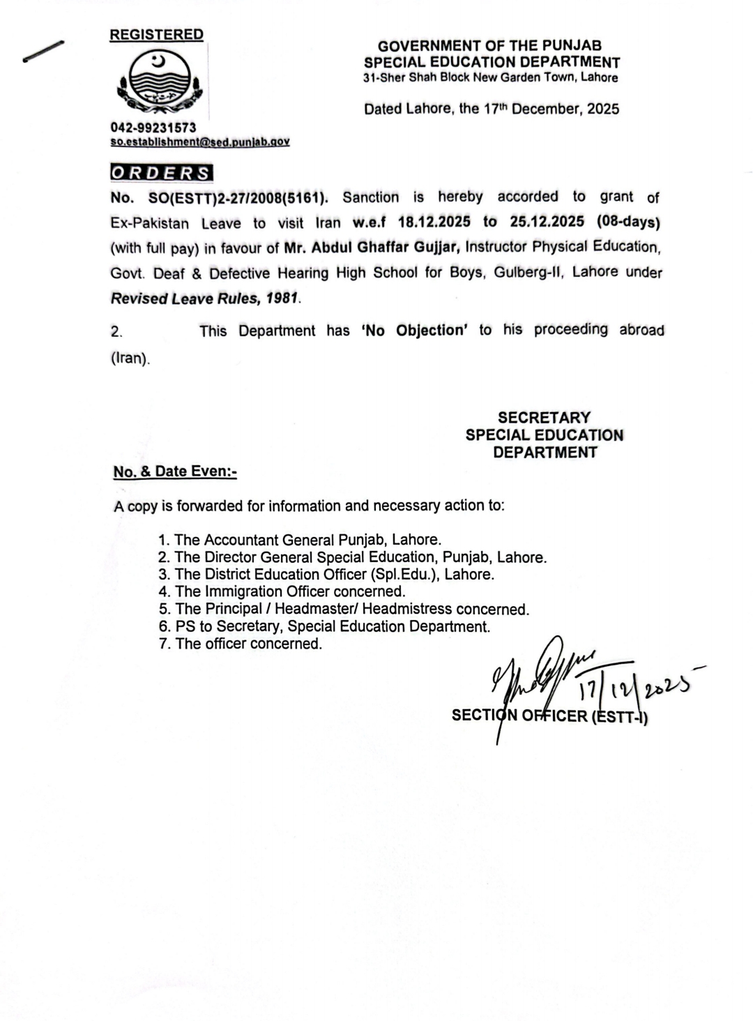 Extra Ordinary Leave |