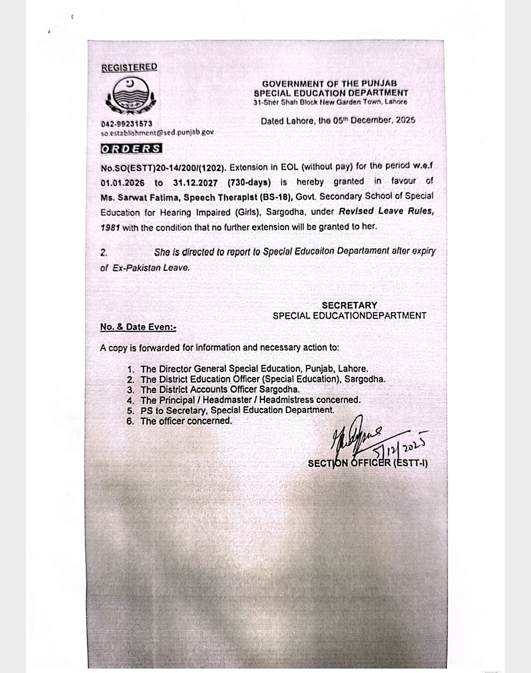 Extension in Extra Ordinary Leave |