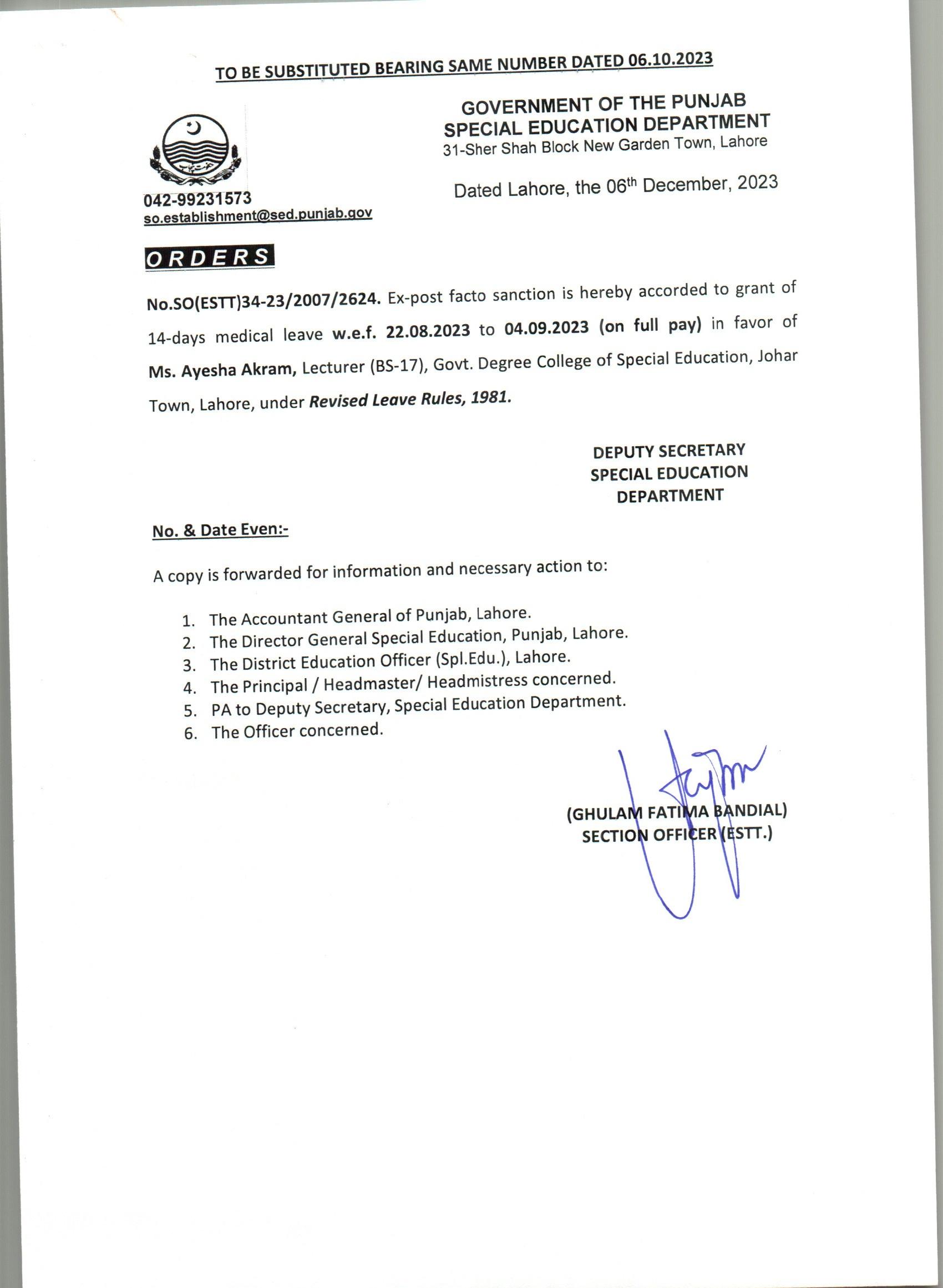 Medical Leave (Substituted) |