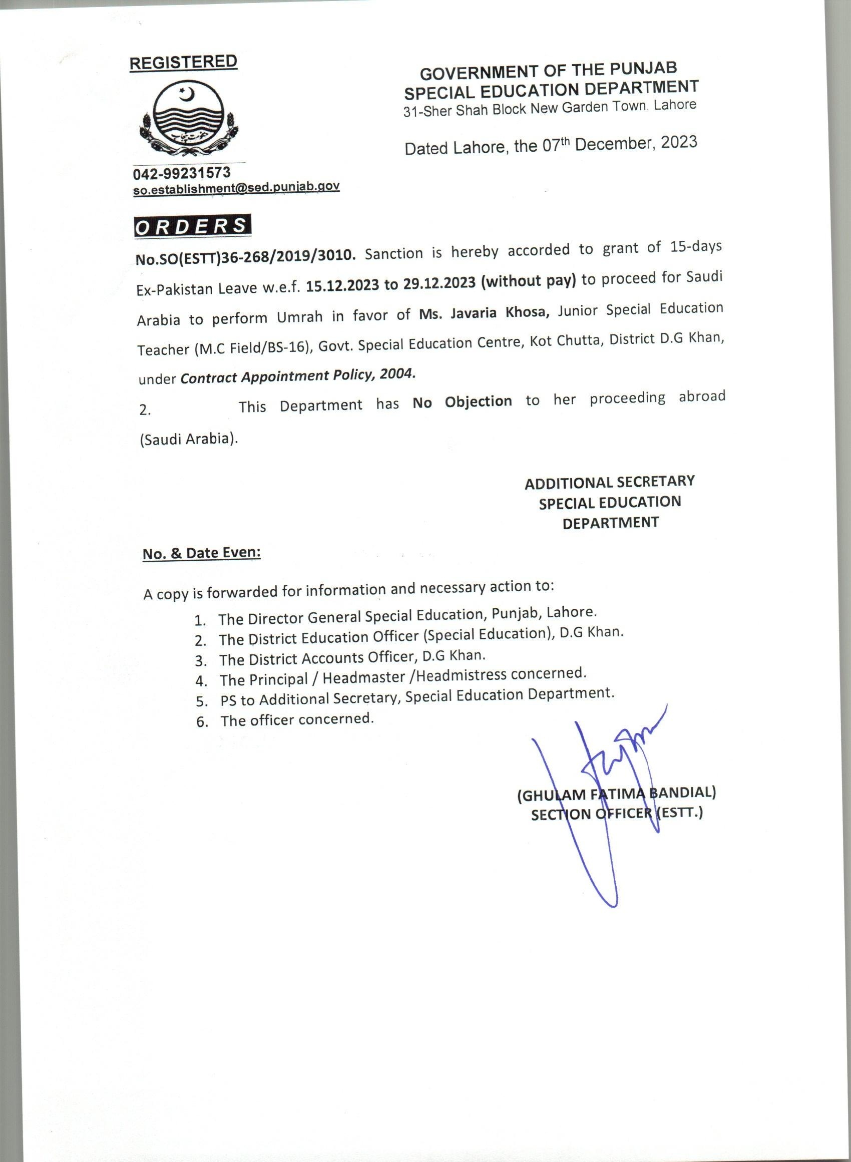 Extra Ordinary Leave |