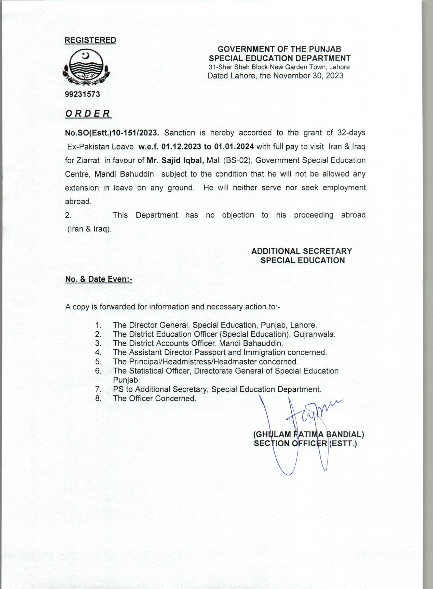 Ex-Pakistan Leave |