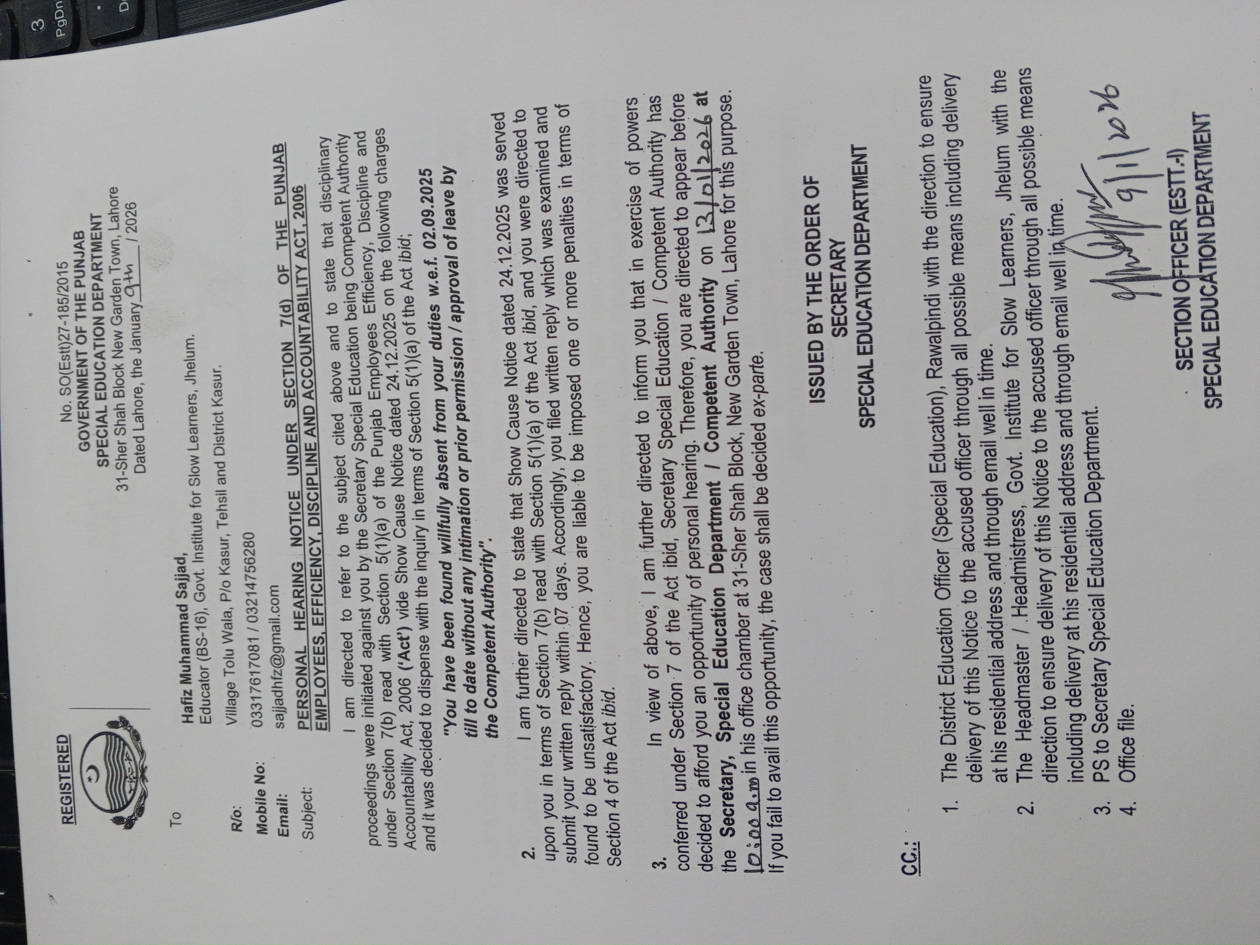 Speaking Orders / Show Cause Orders
