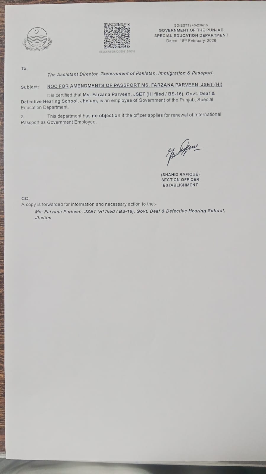 Category Departmental Permissions Date Tuesday, February 24, 2026 - 12:00 File IMG-20260224-WA0058.jpg65.32 KB Employee Name Farzana Perveen Prominent Notifications