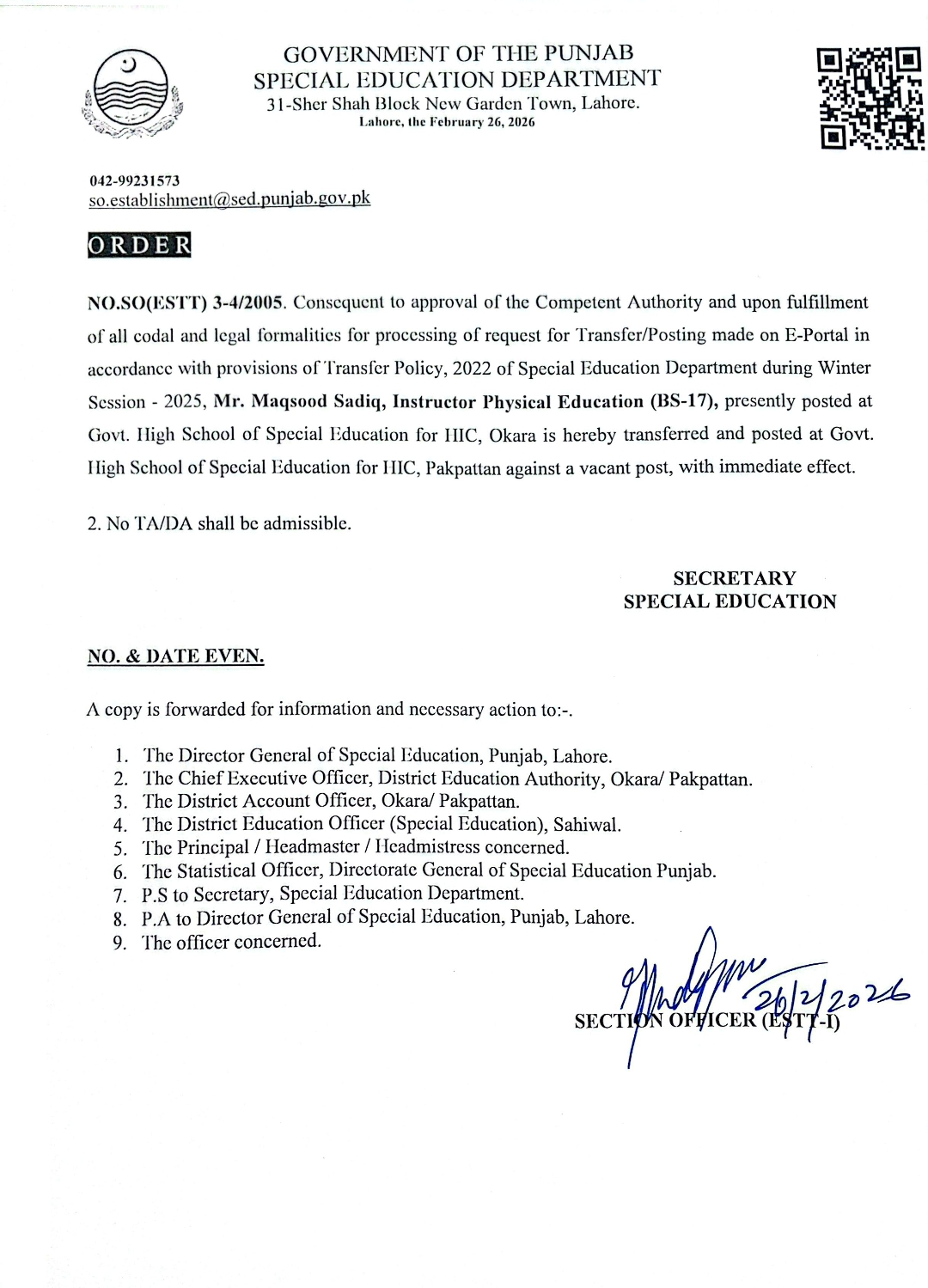 Transfer / Posting Orders