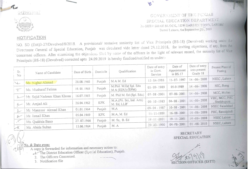 Vice Principals (BS-18) (Devolved)