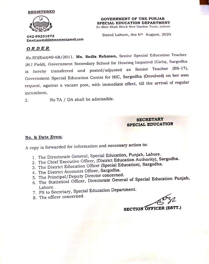 Category Transfer / Posting Orders Date Thursday, August 6, 2020 - 12:00 Order No SO(ESTT.)40-68/2011 File WhatsApp Image 2020-08-07 at 11.47.45 AM (1).jpeg78.57 KB Employee Name Sadia Rehman