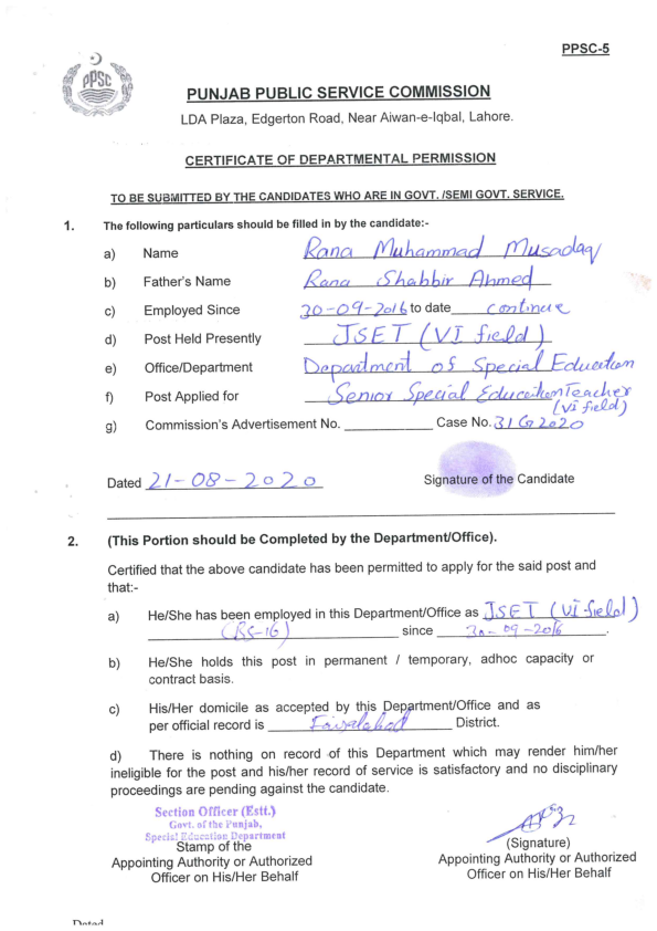 Category Departmental Permissions Date Wednesday, August 26, 2020 - 12:00 Order No SO(ESTT.)41-86/2016 File rana.png256.37 KB Employee Name Rana Muhammad Musadaq