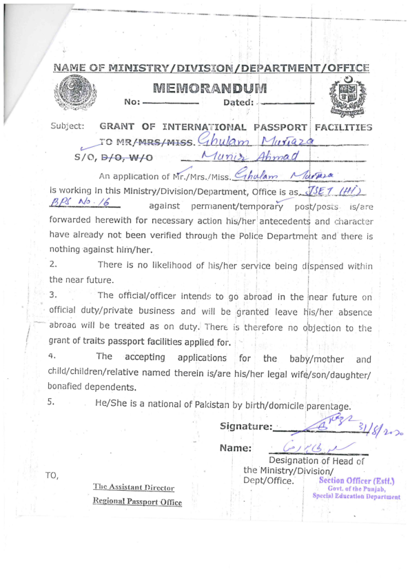 Category Departmental Permissions Date Monday, August 31, 2020 - 12:00 Order No SO(ESTT.)40-425/2017 File murtaza.png293.36 KB Employee Name Ghulam Murtaza