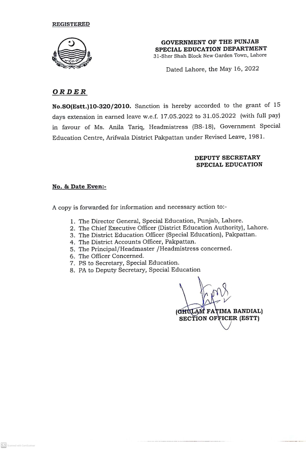 Category Leave Orders Date Monday, May 16, 2022 - 12:00 Order No SO(ESTT.)10-320/2010 File WhatsApp Image 2022-05-16 at 4.44.26 PM.jpeg97.4 KB Employee Name Anila Tariq Prominent Notifications