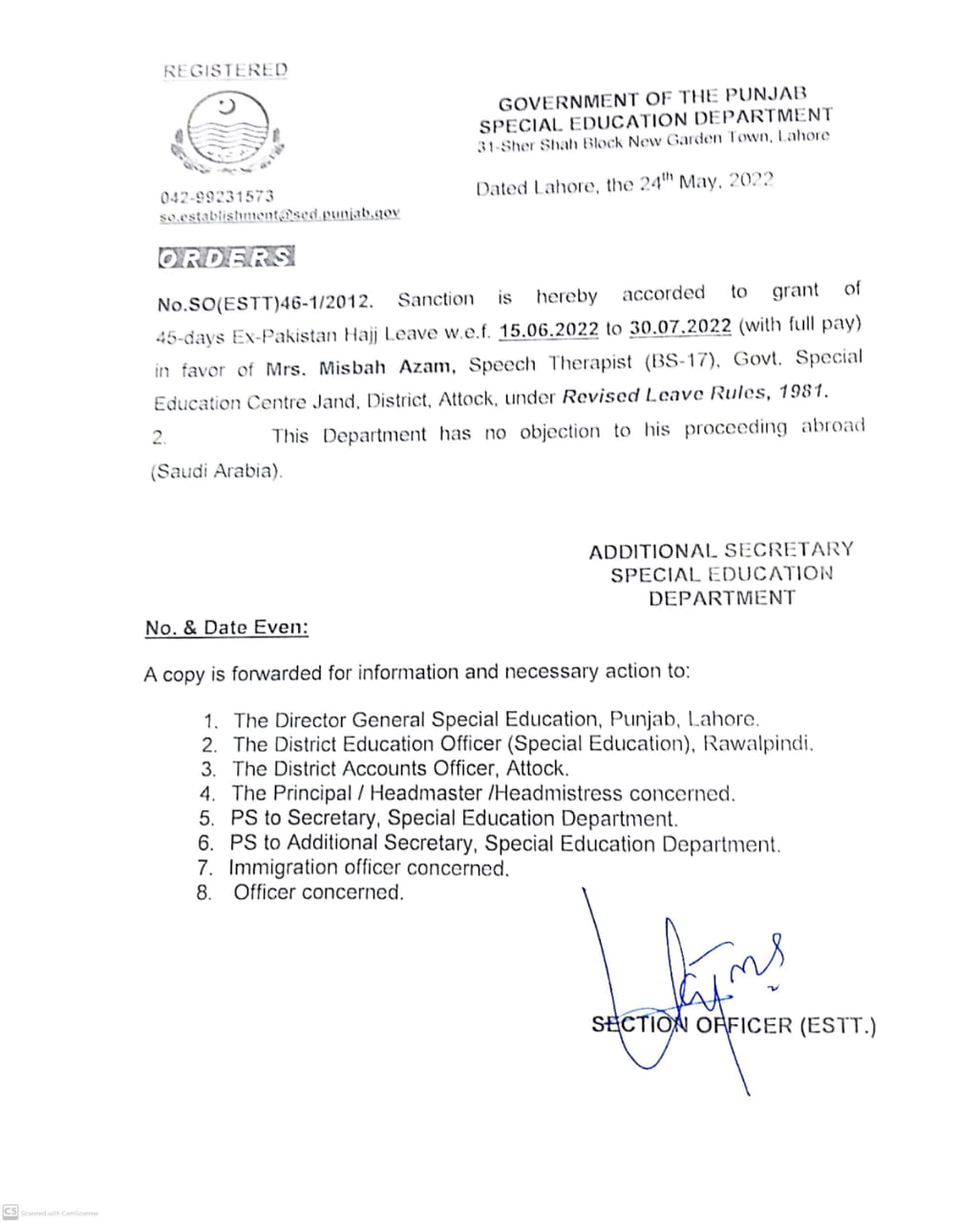 Category Leave Orders Date Tuesday, May 24, 2022 - 12:00 Order No SO(ESTT.)46-1/2012 File WhatsApp Image 2022-05-24 at 3.42.24 PM.jpeg87.03 KB Employee Name Misbah Azam Prominent Notifications