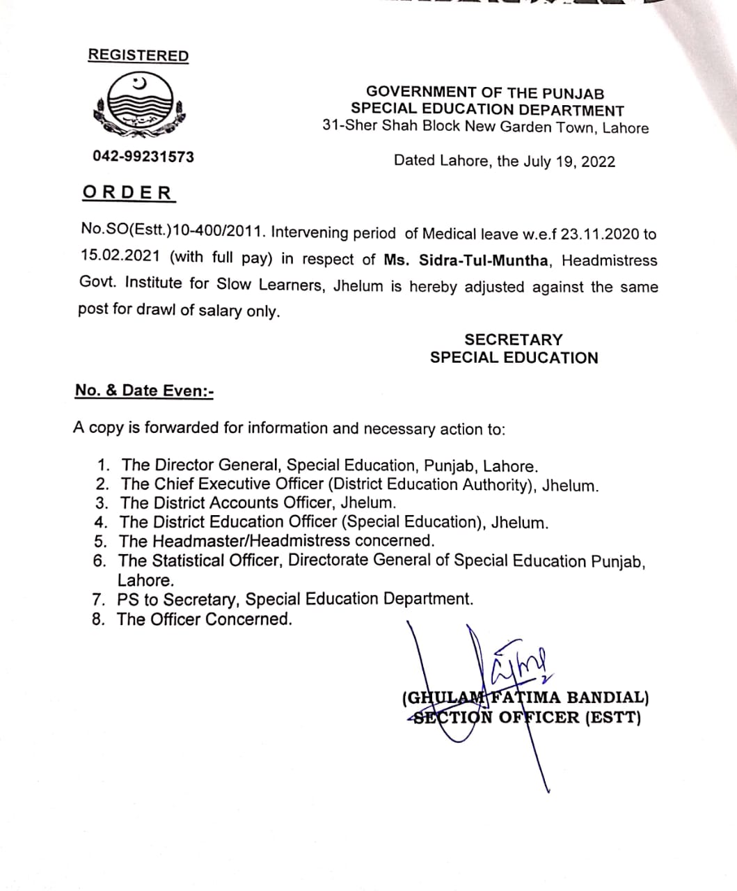 Category Others Date Tuesday, July 19, 2022 - 12:00 Order No S0(ESTT.)10-400/2011 File WhatsApp Image 2022-07-22 at 12.41.55 PM.jpeg102.75 KB Employee Name Sidra-Tul-Muntha Prominent Notifications