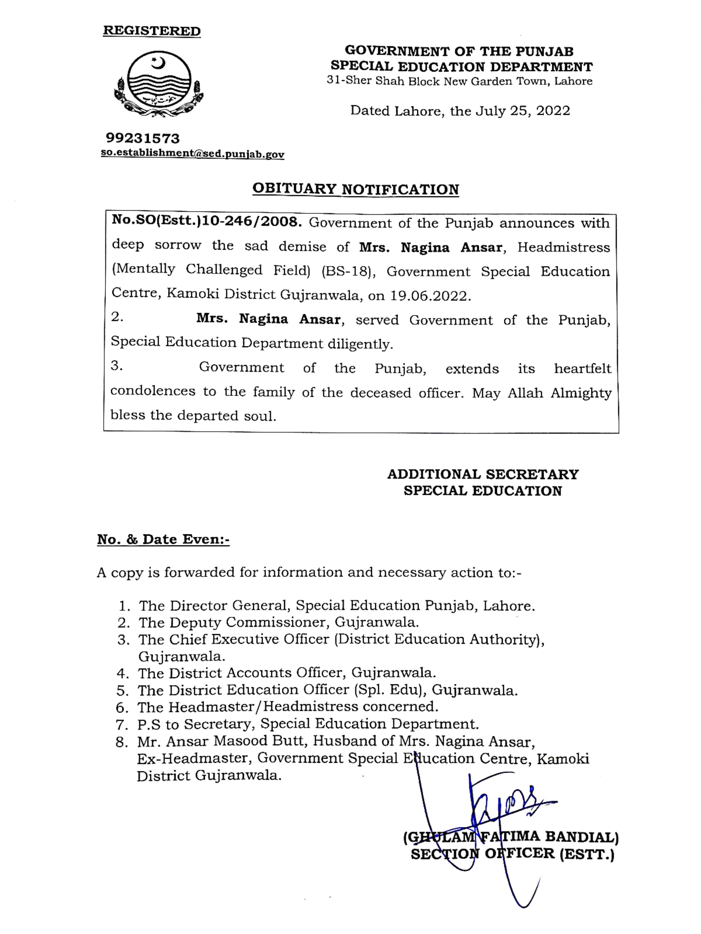 Retirement / Obituary Notifications