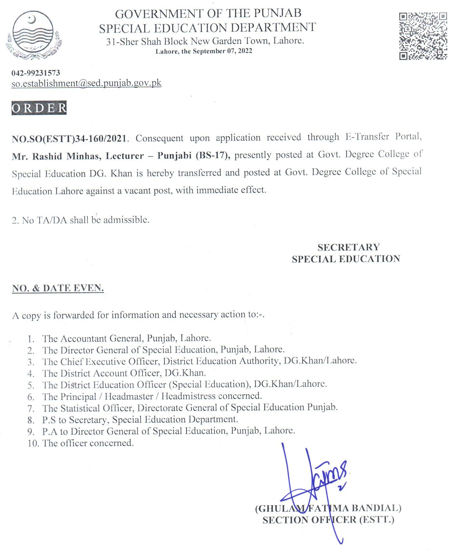 Transfer / Posting Orders