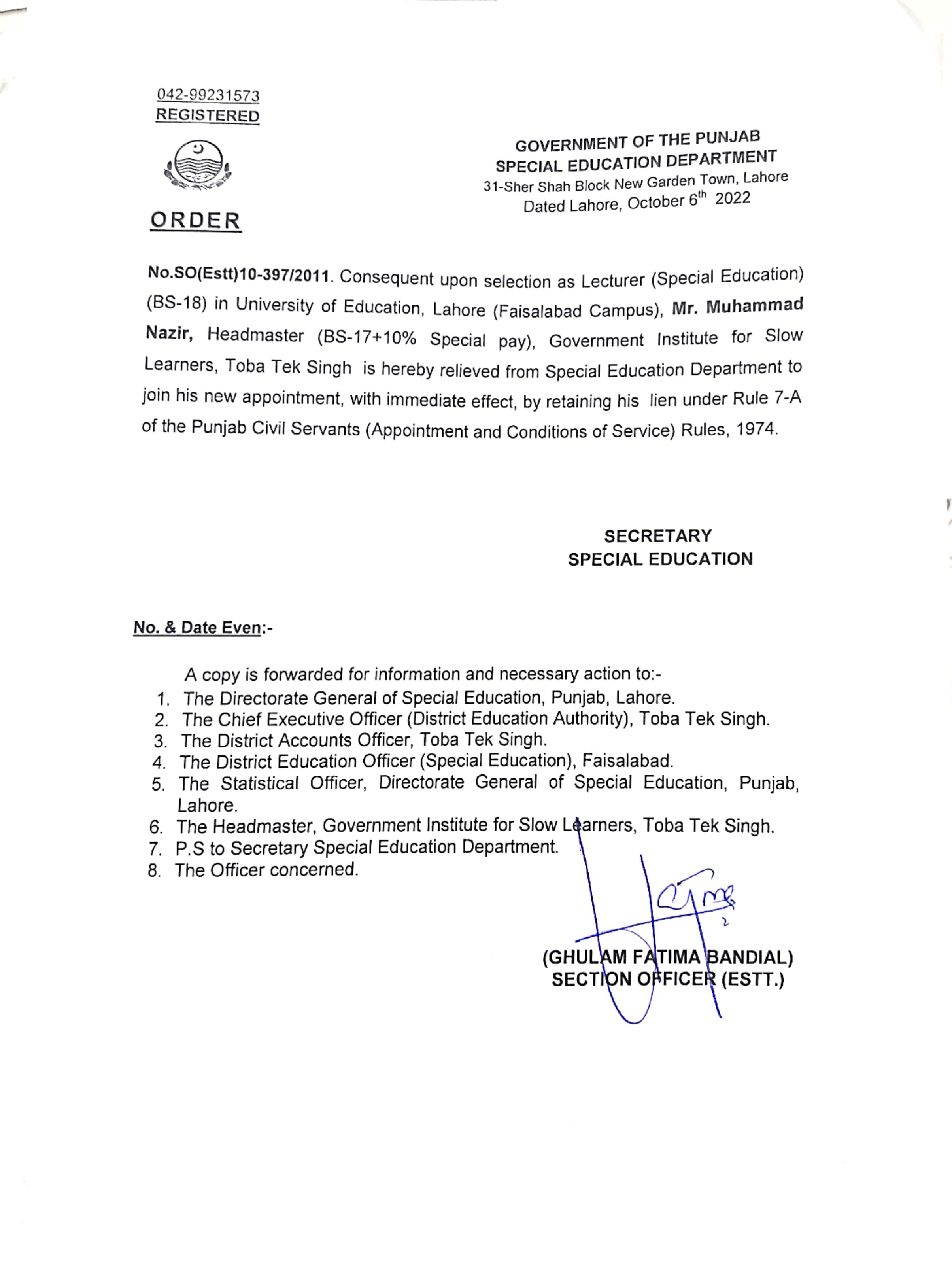 Resignations Relieving Orders