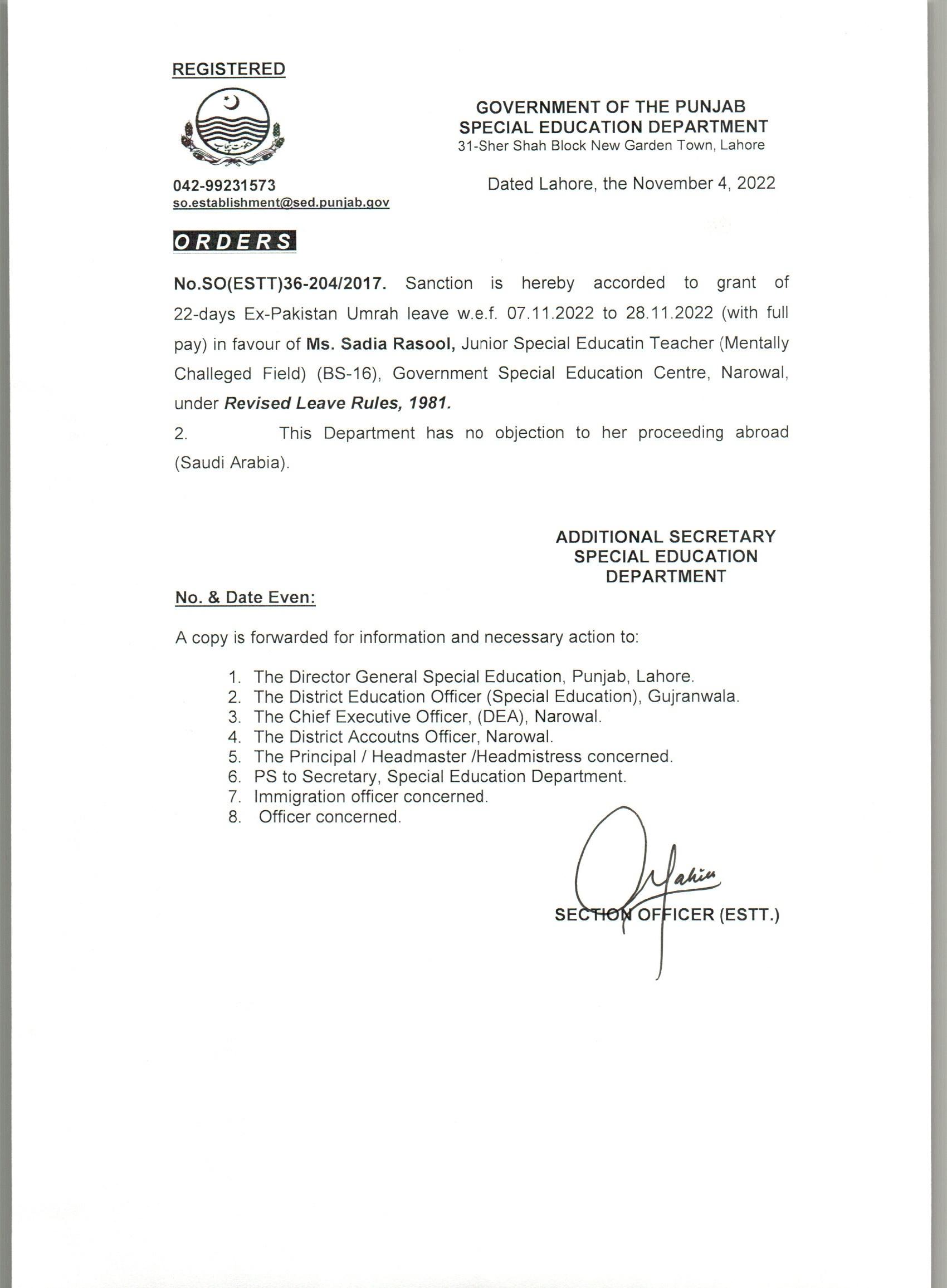 Leave Orders