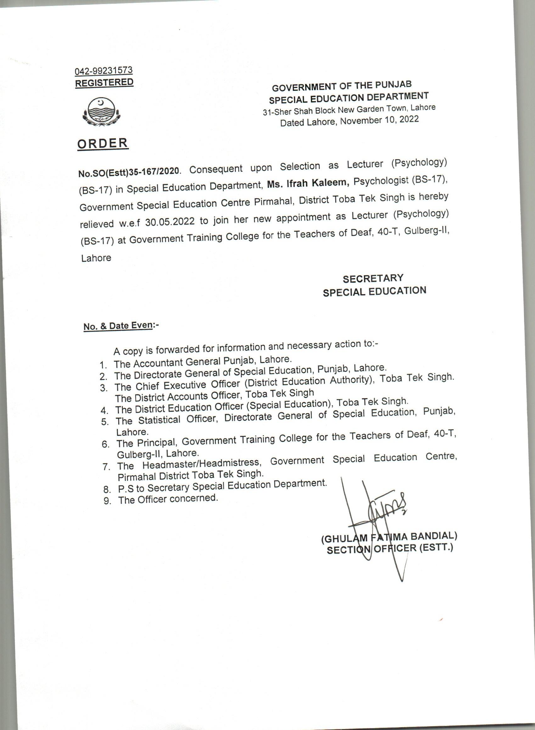 Resignations Relieving Orders