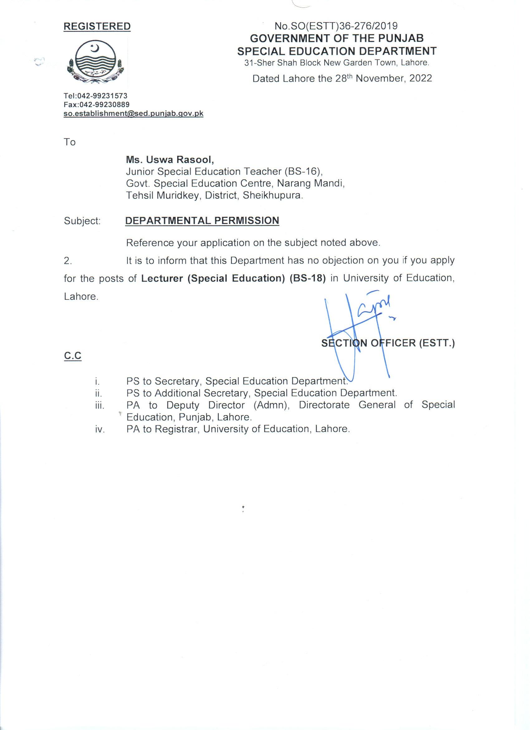 Departmental Permissions