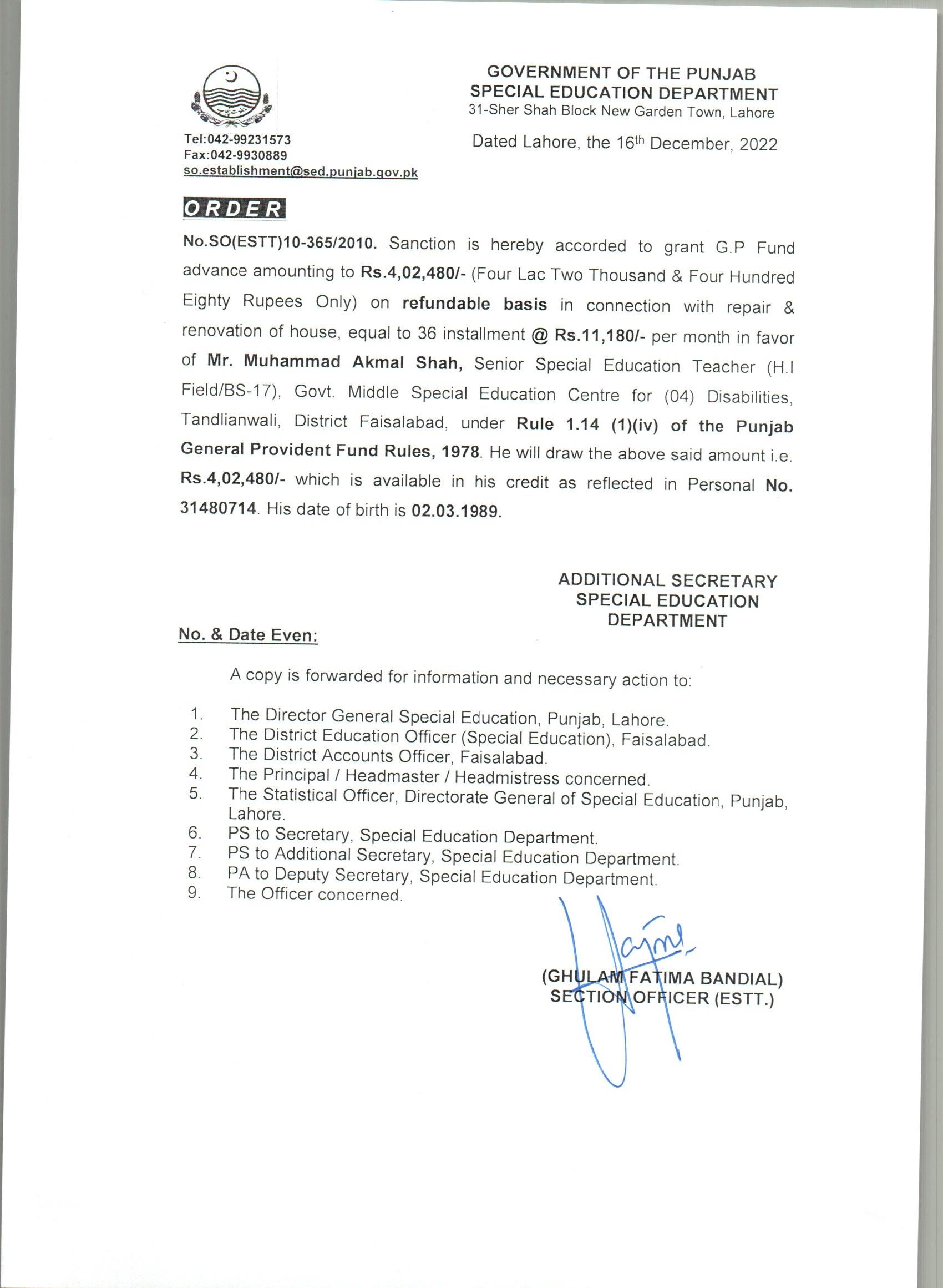 G.P Fund Advance