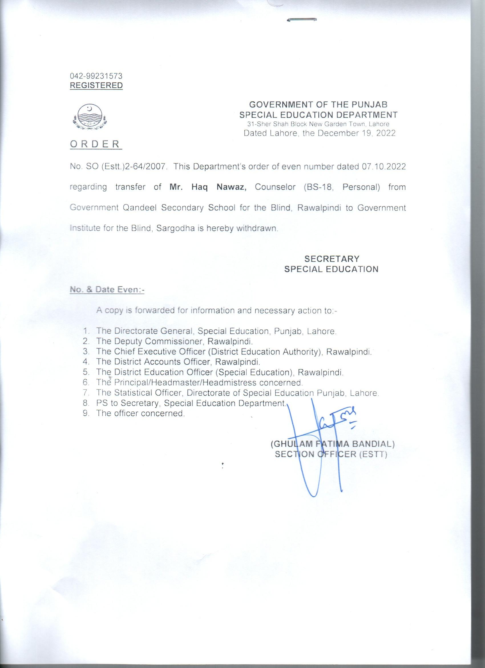 Transfer / Posting Orders