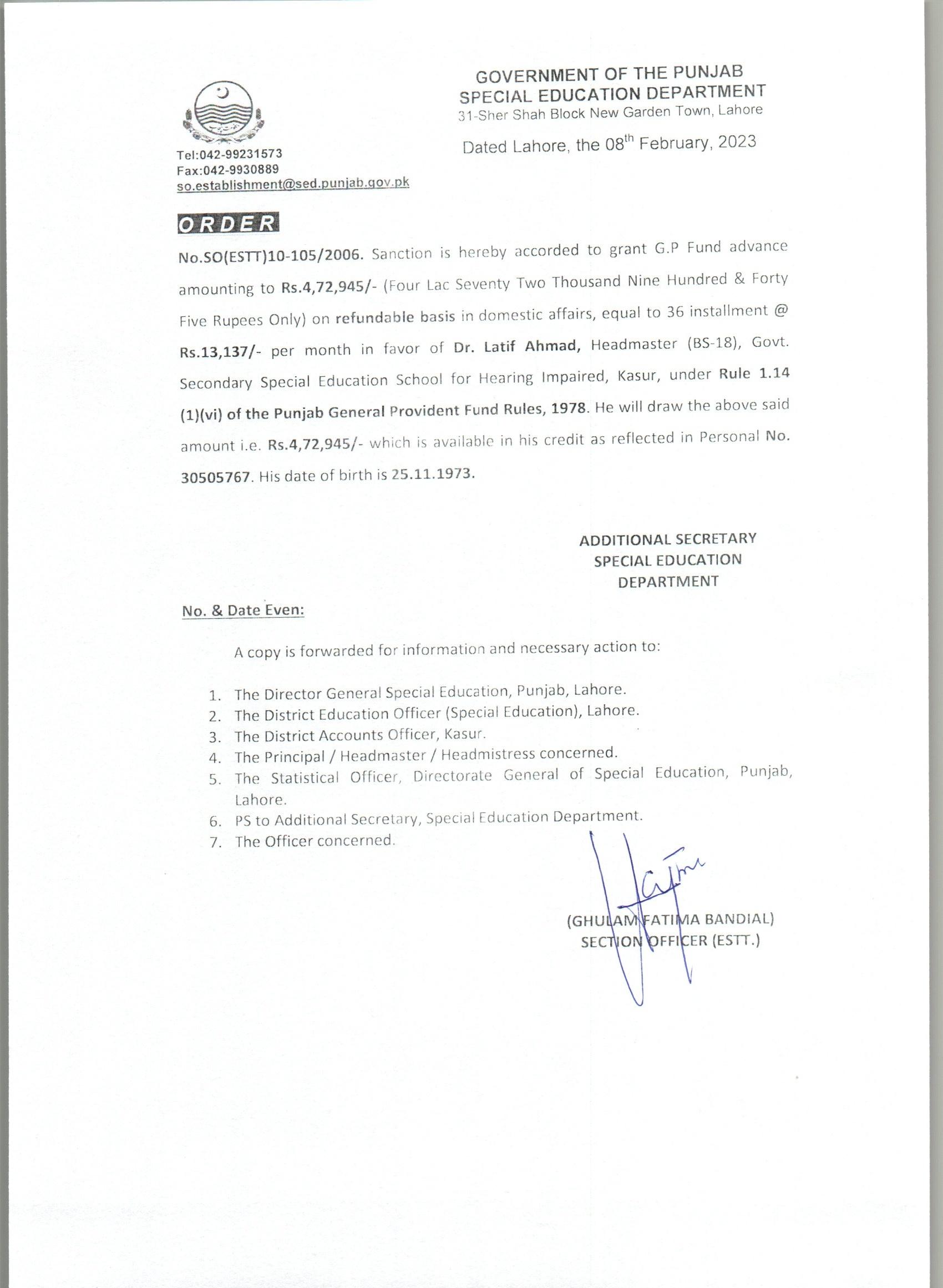 G.P Fund Advance