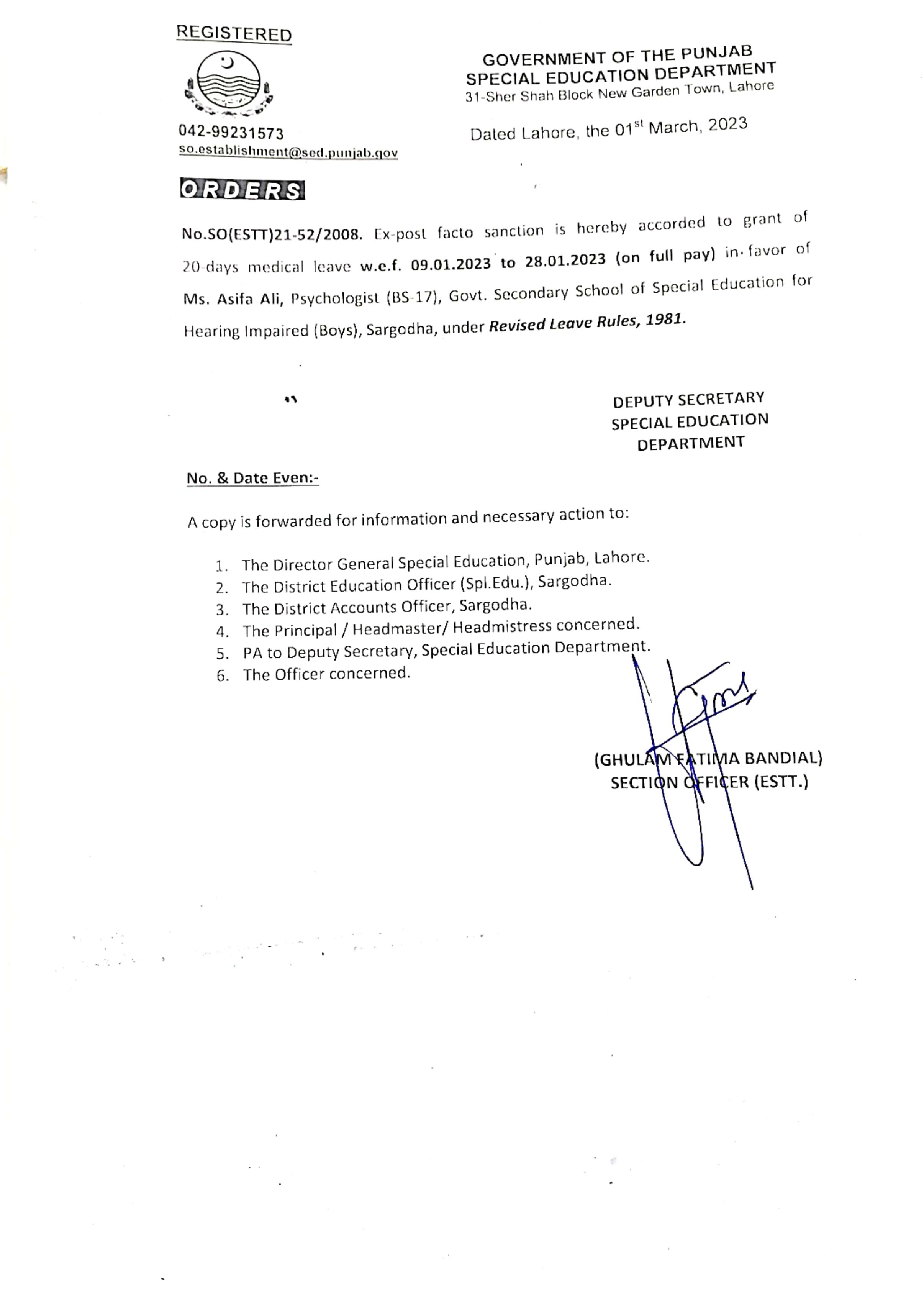 Category Leave Orders Date Friday, March 3, 2023 - 12:00 Order No S0(ESTT.)21-52/2008 File CamScanner 03-02-2023 11.06_page9_image6.jpg506.54 KB Employee Name Asifa Ali Prominent Notifications