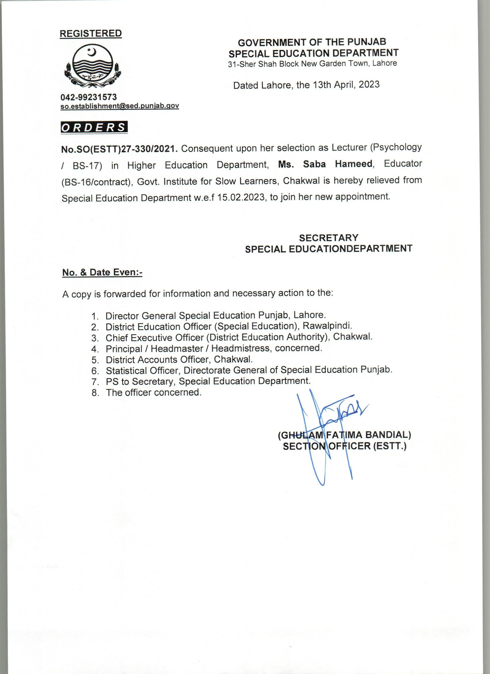 Resignations Relieving Orders